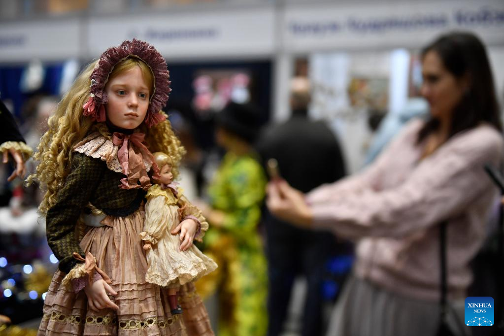 This photo taken on Dec. 10, 2022 shows the venue of a doll exhibition in Moscow, Russia. (Photo by Alexander Zemlianichenko Jr/Xinhua)