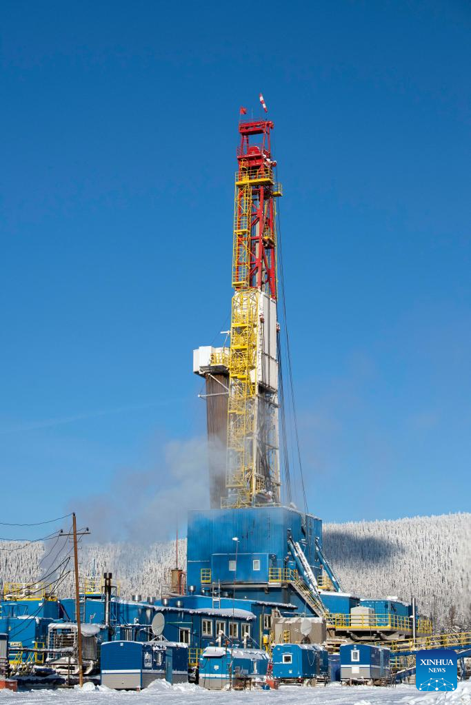 This photo taken on Dec. 18, 2022 shows a drilling platform of Kovykta gas condensate field in Irkutsk, Russia. A new gas field and a new pipeline section were connected on Wednesday to Russia's Power of Siberia pipeline, indicating full completion of the major gas route. (Xinhua/Meng Jing)