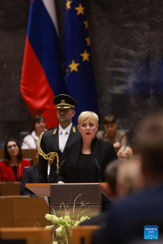 LJUBLJANA, Dec. 22 (Xinhua) -- Natasa Pirc Musar, 54, took the oath of office during a ceremonial session of Slovenia's National Assembly on Thursday. She is the country's fifth, and first female, president.