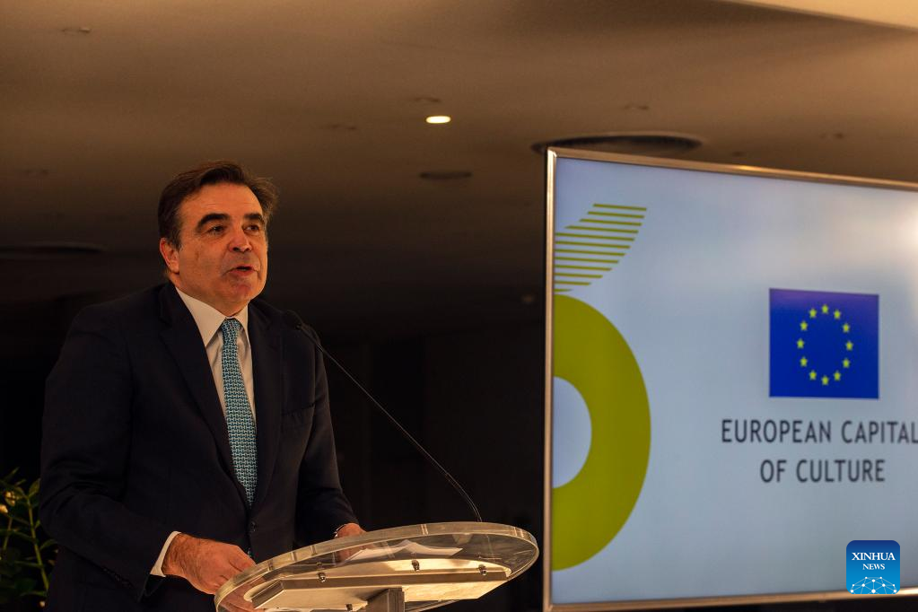 Vice President of the European Commission Margaritis Schinas addresses the European Capitals of Culture handover ceremony in Athens, Greece, Jan. 9, 2023.