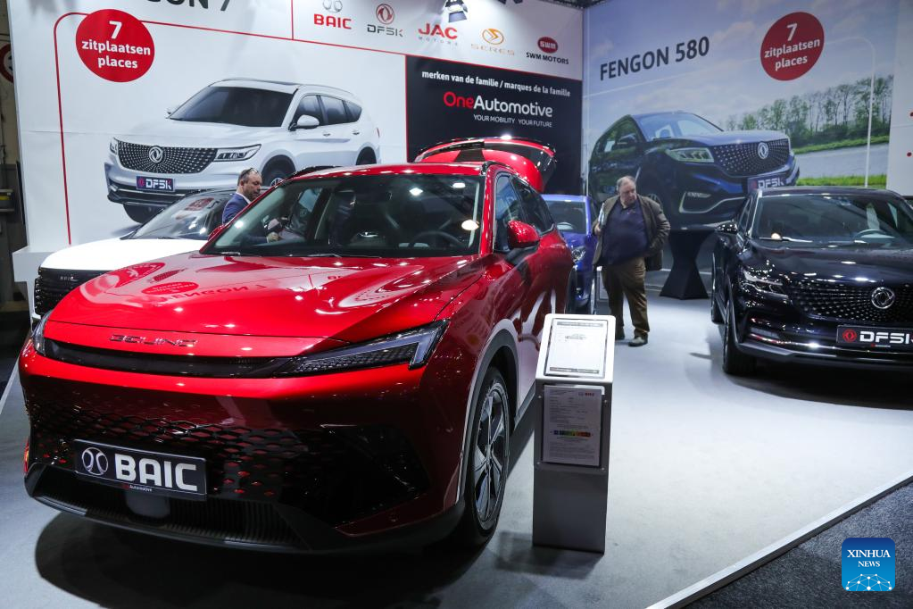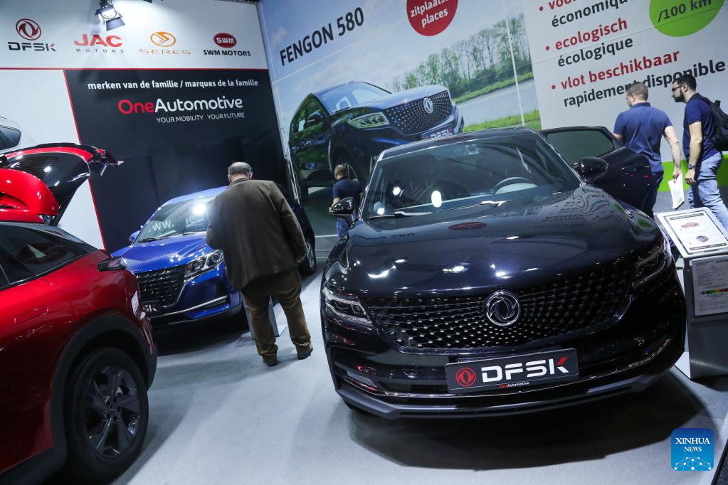 BRUSSELS, Jan. 13 (Xinhua) -- A fleet of luxury electric vehicles (EV) from Chinese manufacturers were showcased for the first time this week at the 100th Brussels Motor Show, which opened its doors to industry professionals and media on Friday.