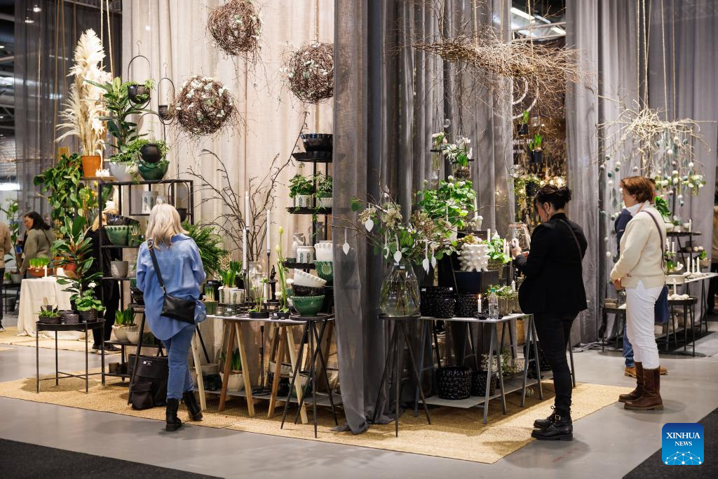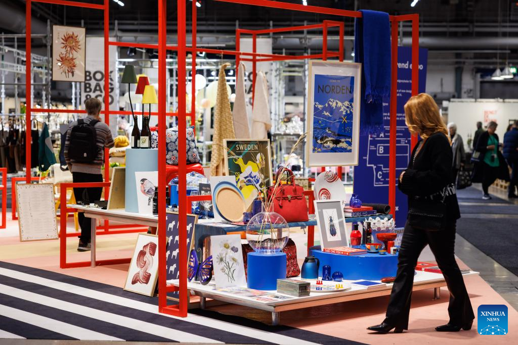 People visit Formex Spring 2023 in Stockholm, Sweden, on Jan. 18, 2023. The four-day Formex Spring 2023 kicked off on Tuesday aimed at highlighting the latest Nordic interior design trends. (Photo by Wei Xuechao/Xinhua)