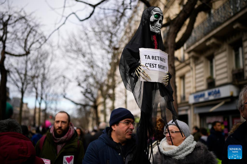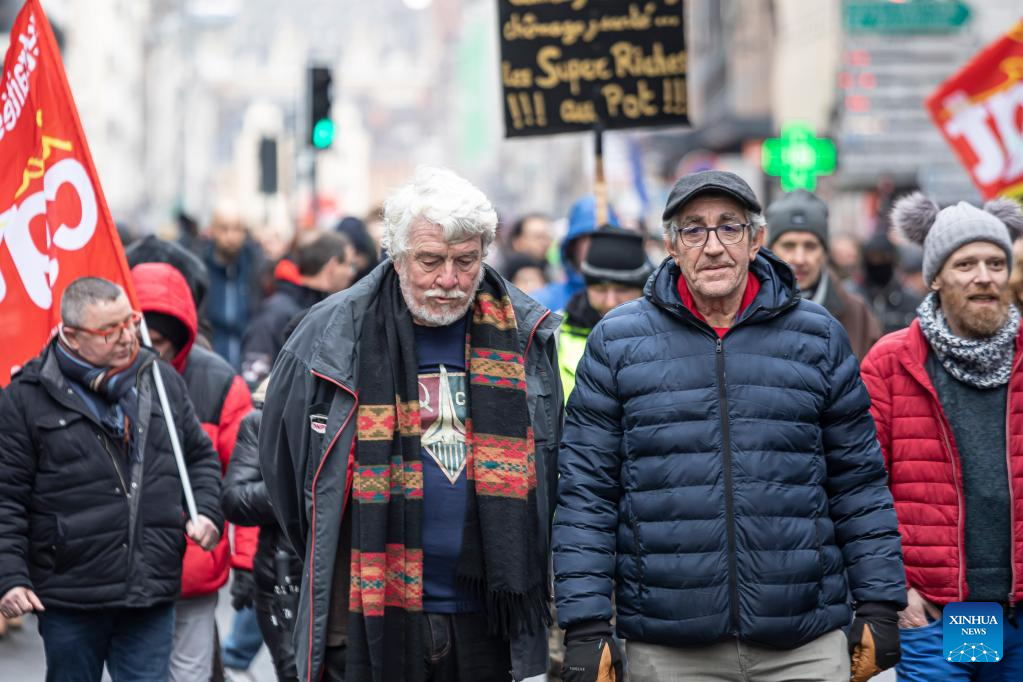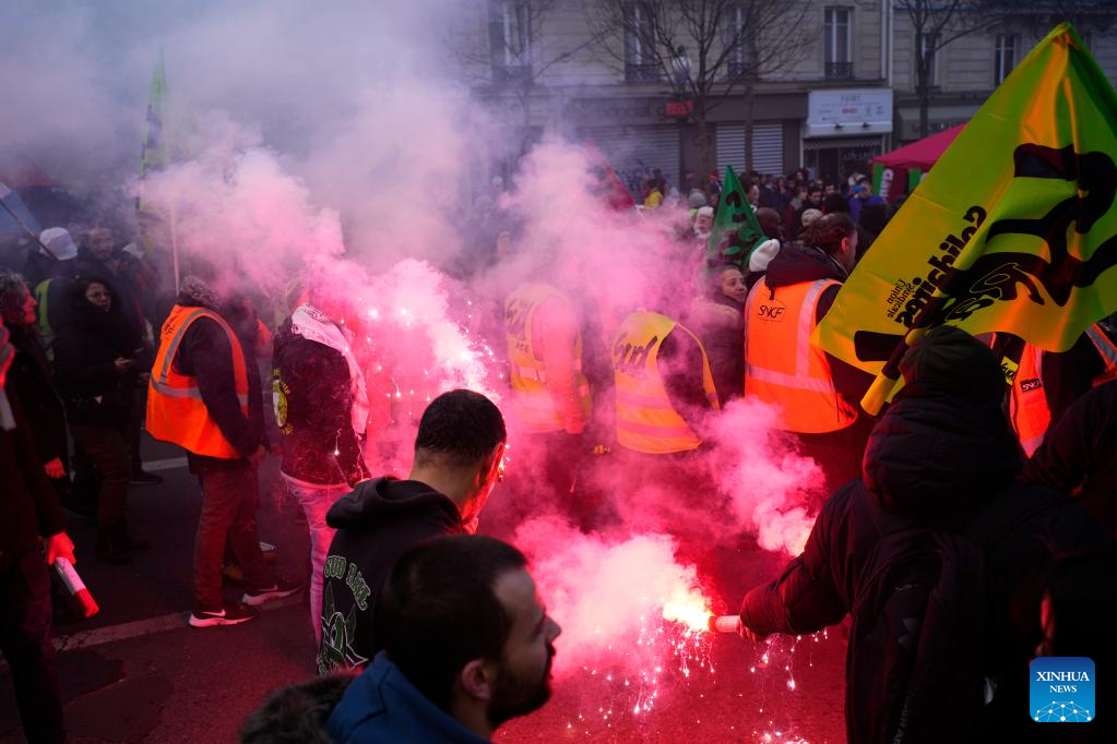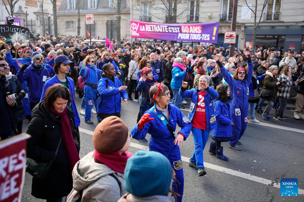 PARIS, Jan. 31 (Xinhua) -- People across France took to the streets again on Tuesday to protest against the government's controversial pension reform plan. The first nationwide strike was held on Jan. 19.