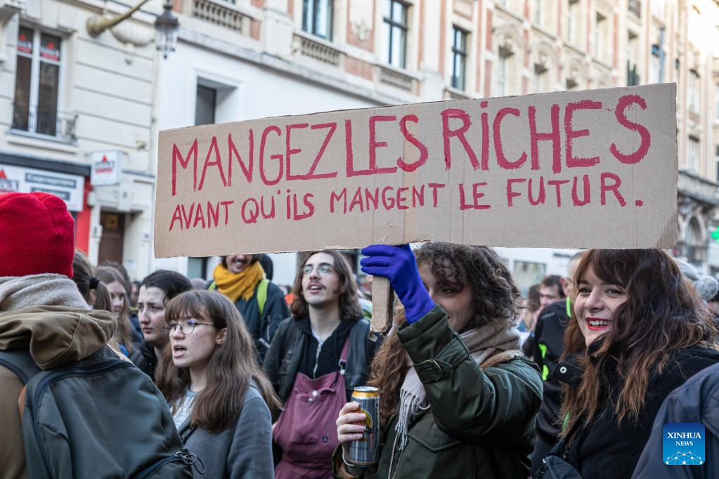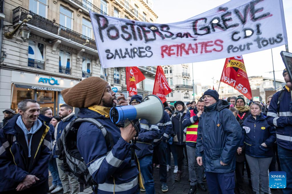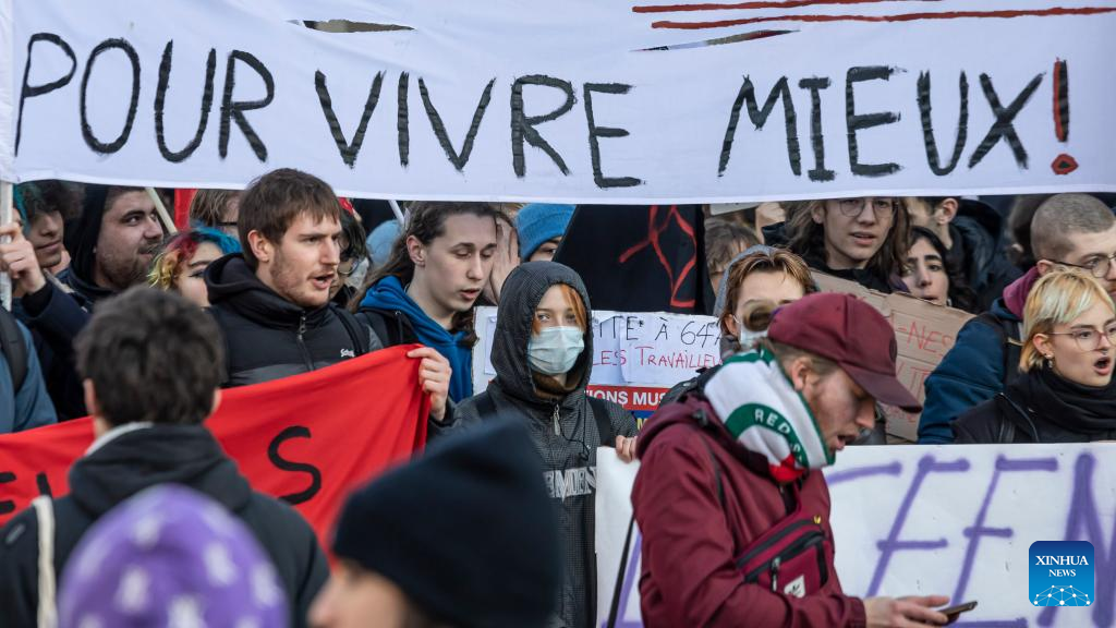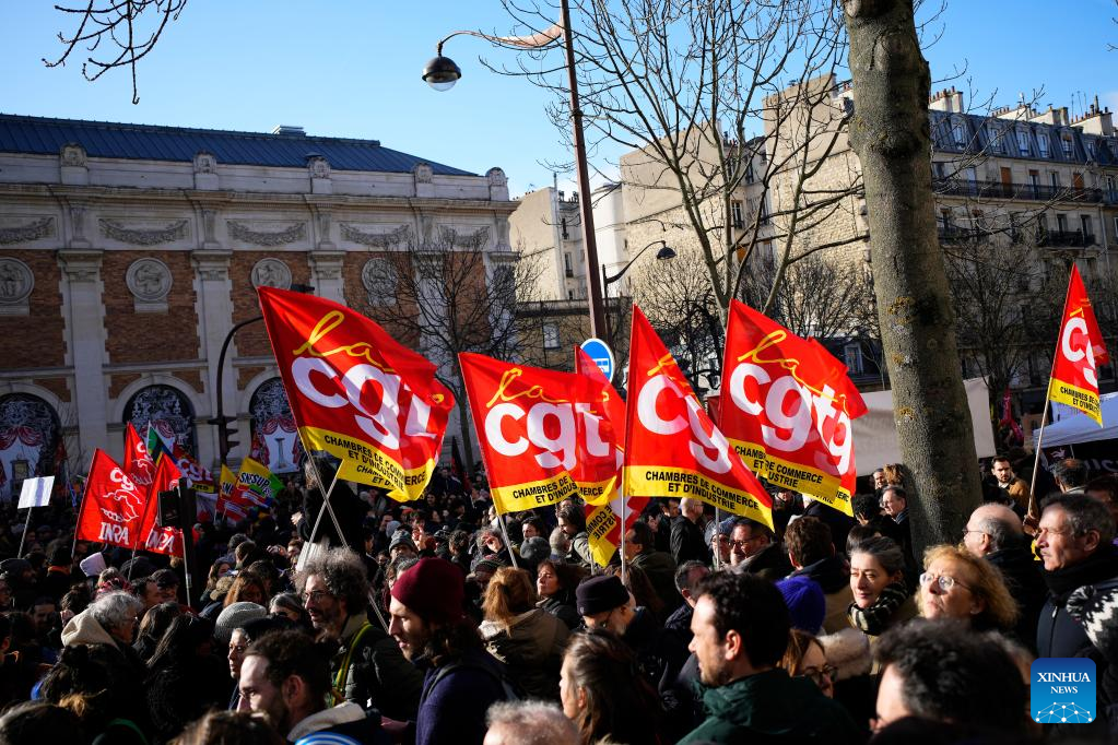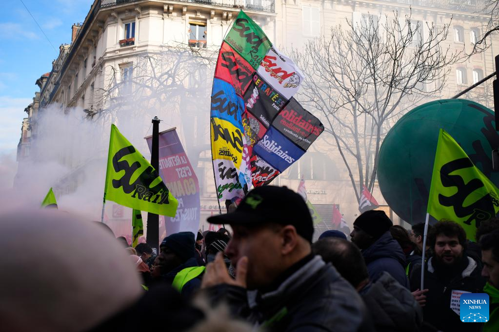 PARIS, Jan. 31 (Xinhua) -- People across France took to the streets again on Tuesday to protest against the government's controversial pension reform plan. The first nationwide strike was held on Jan. 19.