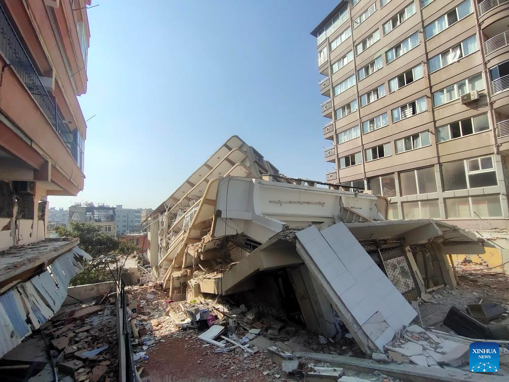 This photo taken on Feb. 13, 2023 shows damaged buildings in Antakya of Hatay Province, Türkiye. The death toll from last week's powerful earthquakes in southern Türkiye rose to 35,418 on Tuesday. A total of 105,505 people were injured in the tremors, of whom 13,208 are still receiving treatment in hospitals, Turkish President Recep Tayyip Erdogan said at a press conference after a cabinet meeting. (Xinhua/Shadati)