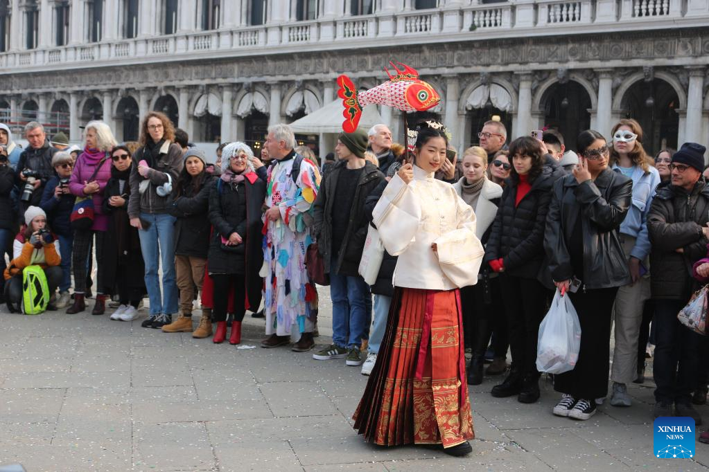 VENICE, Italy, Feb. 20 (Xinhua) -- Chinese traditional clothing made its debut at the Venice Carnival amid deepening cultural exchange between the eastern Chinese city of Suzhou and its sister city Venice.
