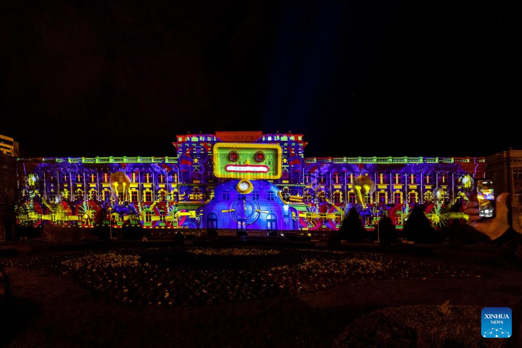 This photo taken on March 15, 2023 shows a scene during the Festival of Lights at the Croatian National Theatre in Zagreb, Croatia. (Igor Kralj/PIXSELL via Xinhua)