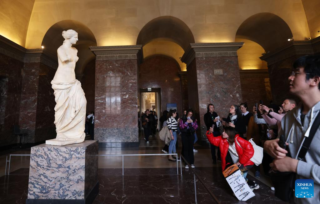 This photo taken on March 22, 2023 shows the statue la Venus de Milo at the Louvre Museum in Paris, France. The Louvre, formerly a royal residence, became a museum in 1793 during the French Revolution. (Xinhua/Gao Jing)