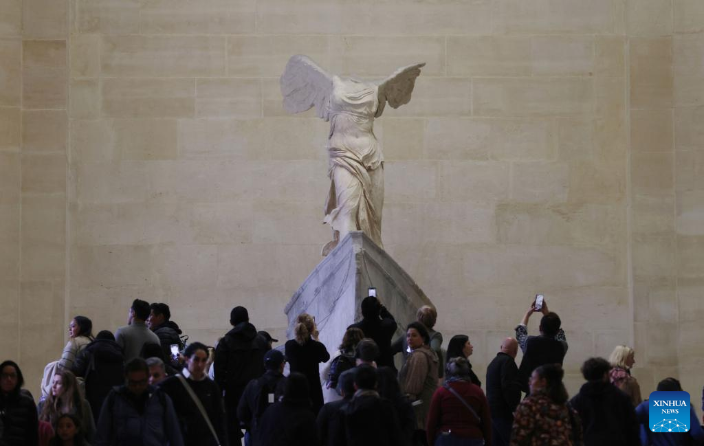 This photo taken on March 22, 2023 shows the statue "The Winged Victory of Samothrace" at the Louvre Museum in Paris, France. The Louvre, formerly a royal residence, became a museum in 1793 during the French Revolution. (Xinhua/Gao Jing)
