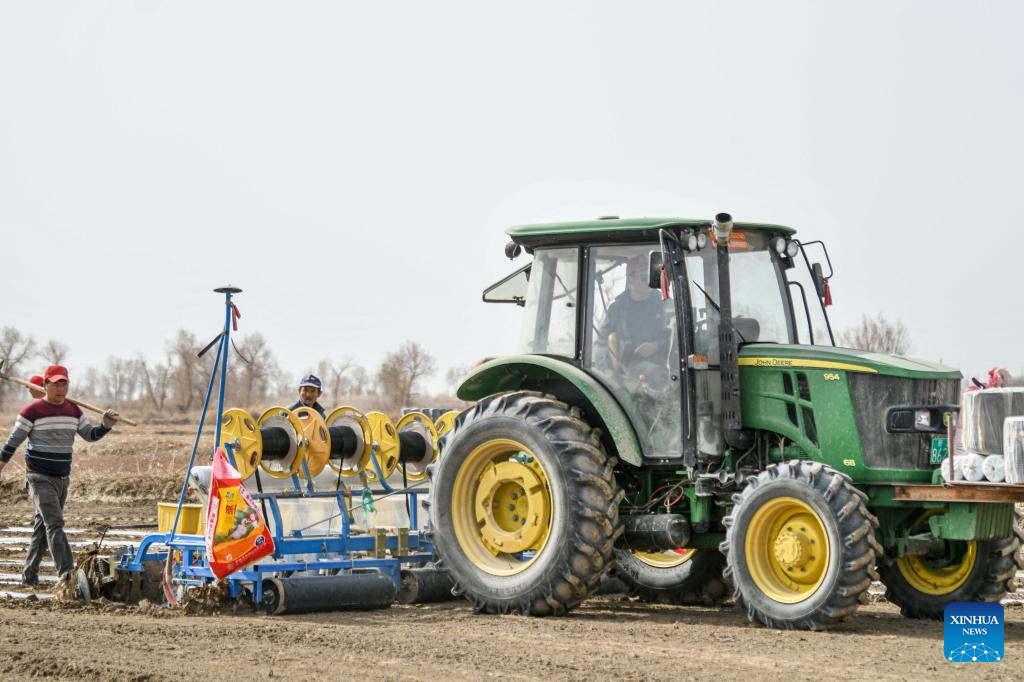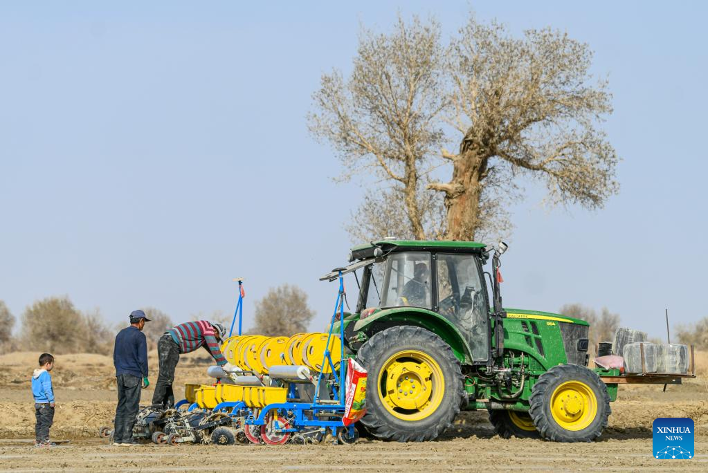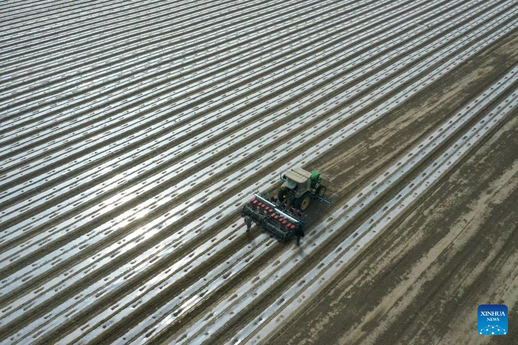 Major cotton-producing counties in southern Xinjiang have started spring sowing and are expected to see the sowing peak around early April. Cotton sowing in northern Xinjiang is forecast to begin after April 5. (Xinhua/Hao Zhao)