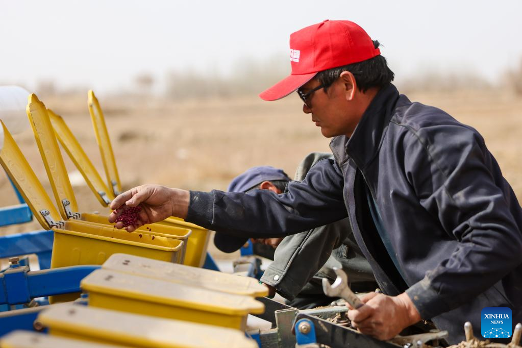 Major cotton-producing counties in southern Xinjiang have started spring sowing and are expected to see the sowing peak around early April. Cotton sowing in northern Xinjiang is forecast to begin after April 5. (Xinhua/Ding Lei)