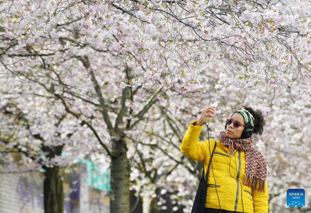 This photo taken on April 5, 2023 shows cherry blossoms in Berlin, Germany. (Xinhua/Ren Pengfei)