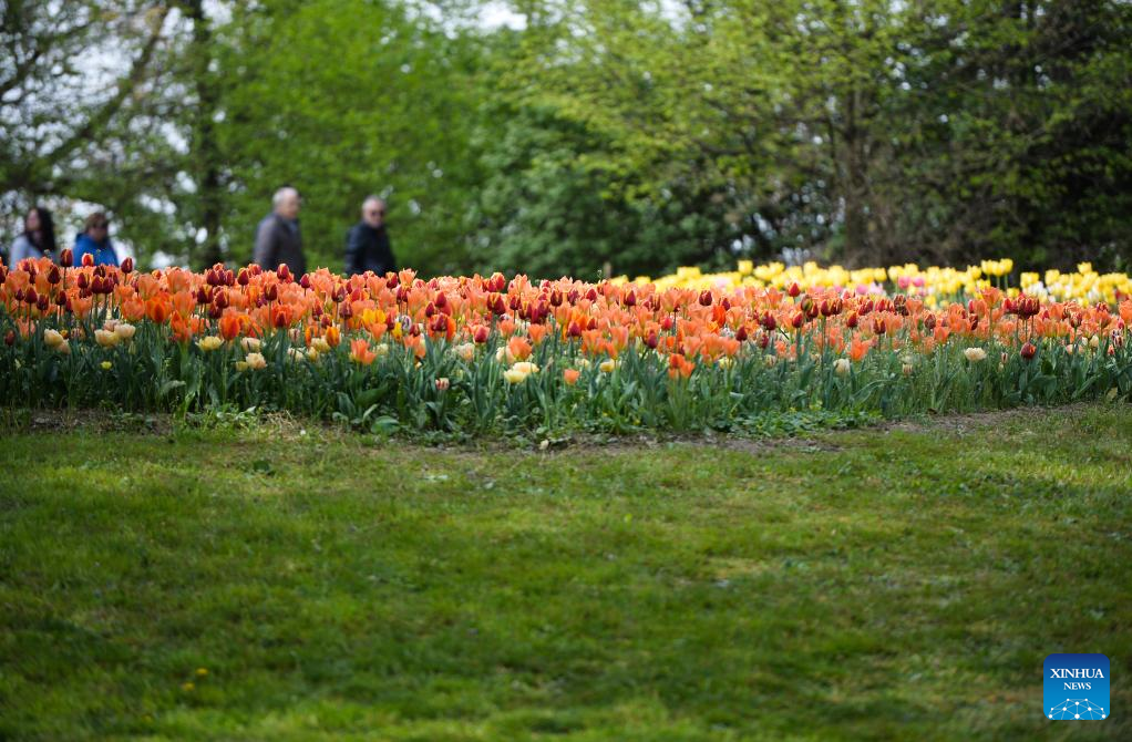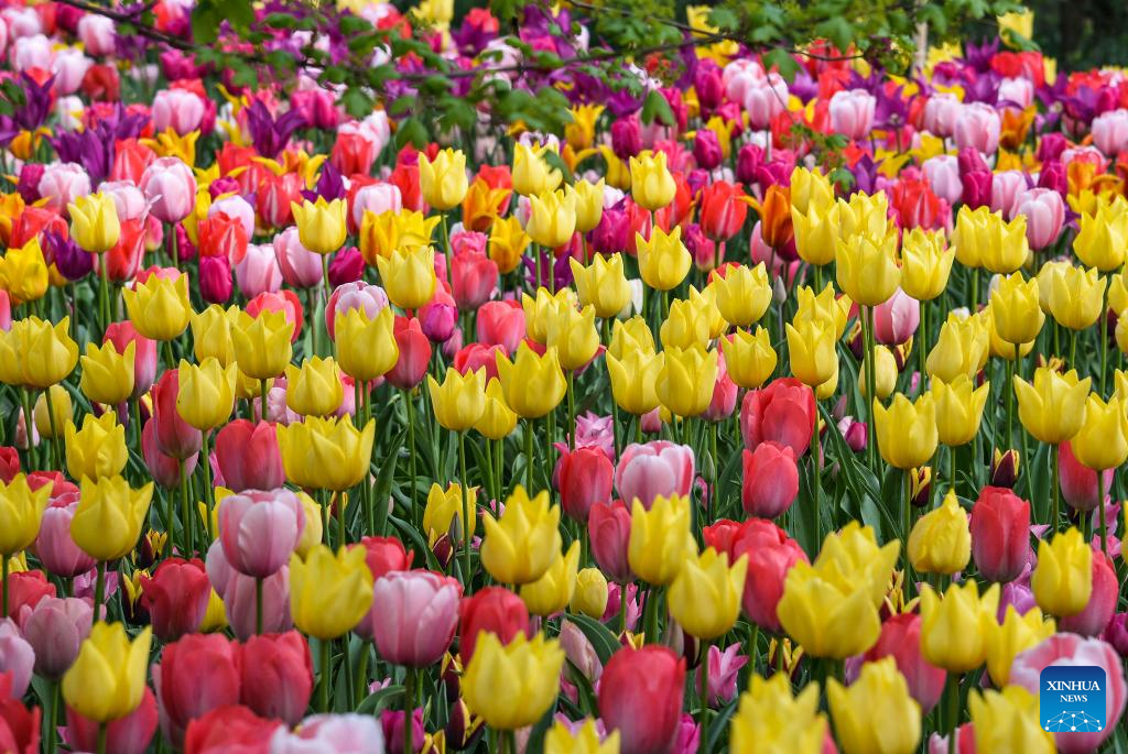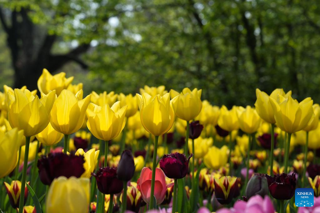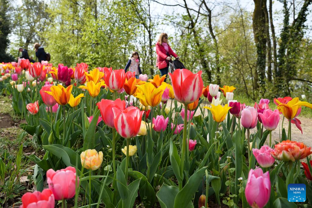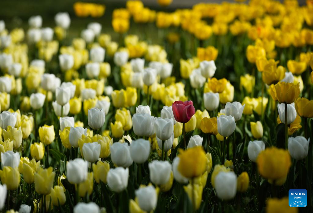 Photo taken on April 11, 2023 shows tulips blooming at the Pralormo Castle park in Pralormo, near Turin, Italy. More than 100,000 tulips are displayed at a tulip show known as Messer Tulipano in the Pralormo Castle park from April 1 to May 1. (Photo by Federico Tardito/Xinhua)