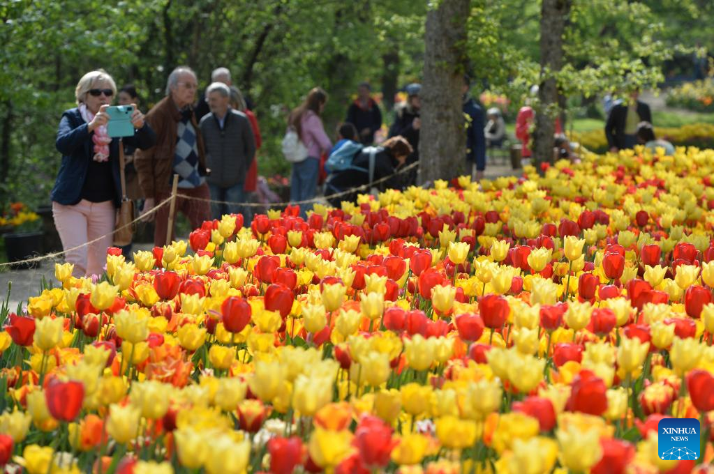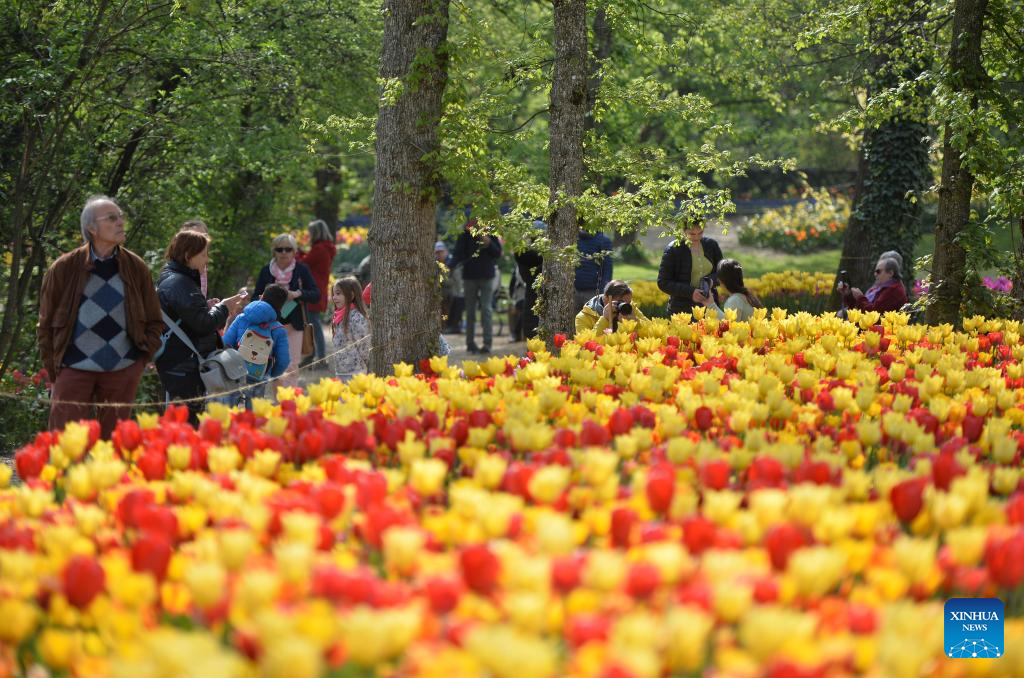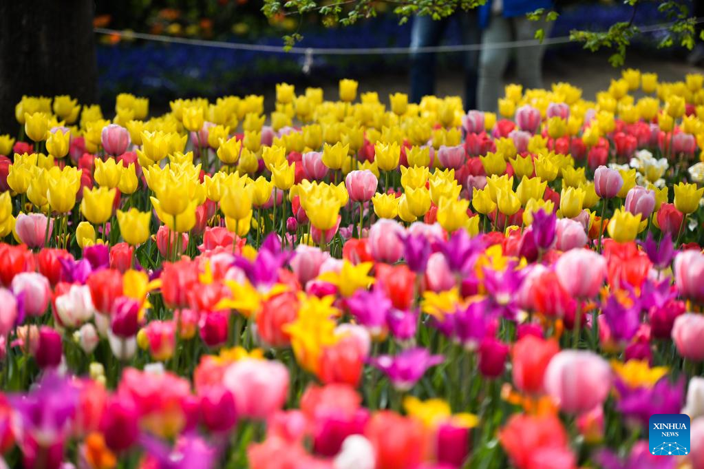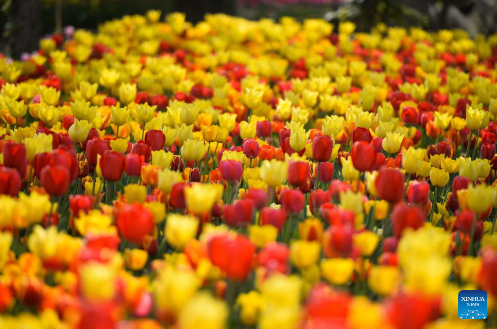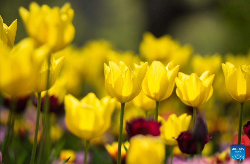 Photo taken on April 11, 2023 shows tulips blooming at the Pralormo Castle park in Pralormo, near Turin, Italy. More than 100,000 tulips are displayed at a tulip show known as Messer Tulipano in the Pralormo Castle park from April 1 to May 1. (Photo by Federico Tardito/Xinhua)