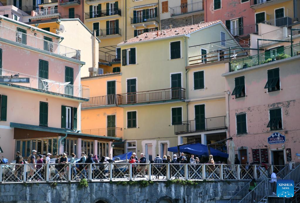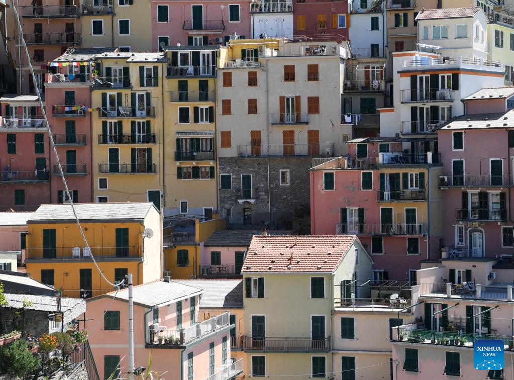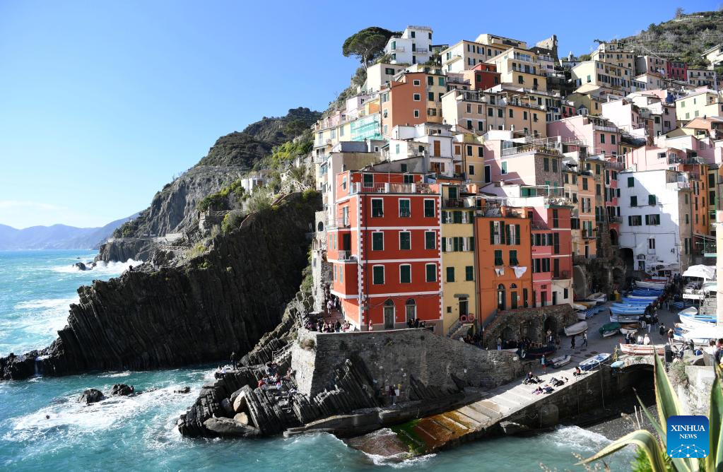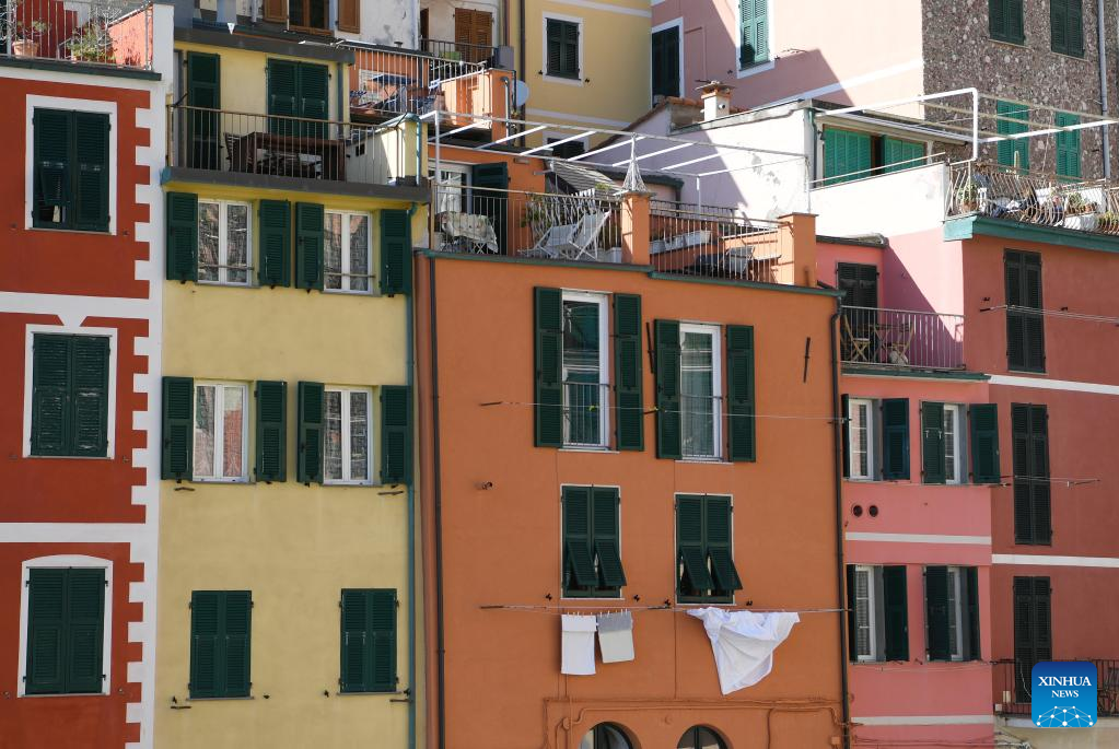 This photo taken on April 14, 2023 shows the view of Riomaggiore in Cinque Terre National Park of Liguria, Italy. The celebrated Cinque Terre coastal area is a UNESCO World Heritage site. (Xinhua/Jin Mamengni)