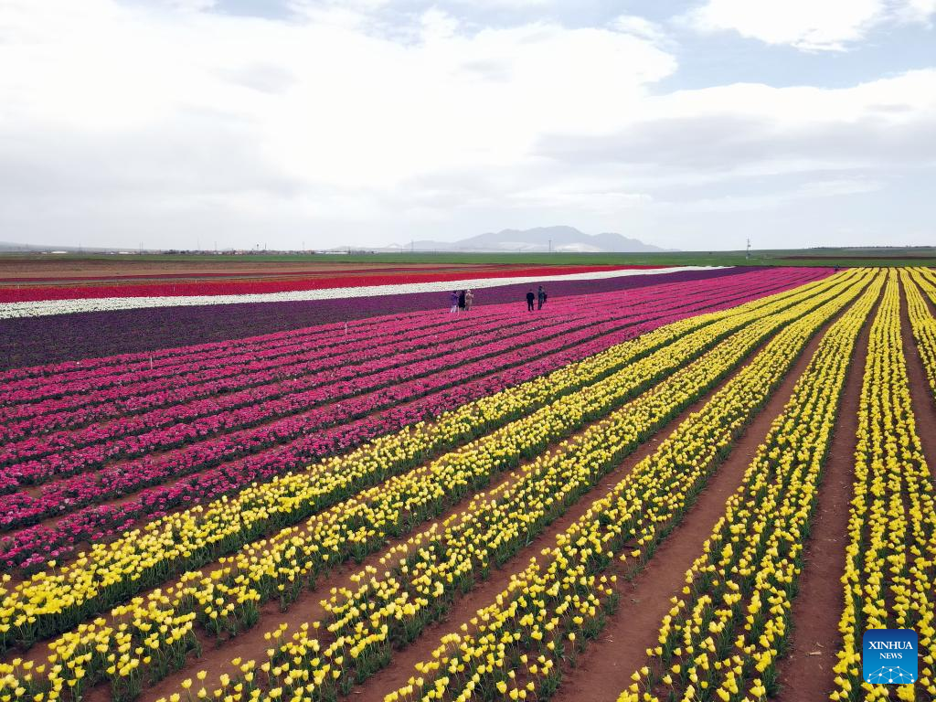This photo taken on April 18, 2023 shows blooming tulips in Konya, Türkiye. (Photo by Mustafa Kaya/Xinhua)