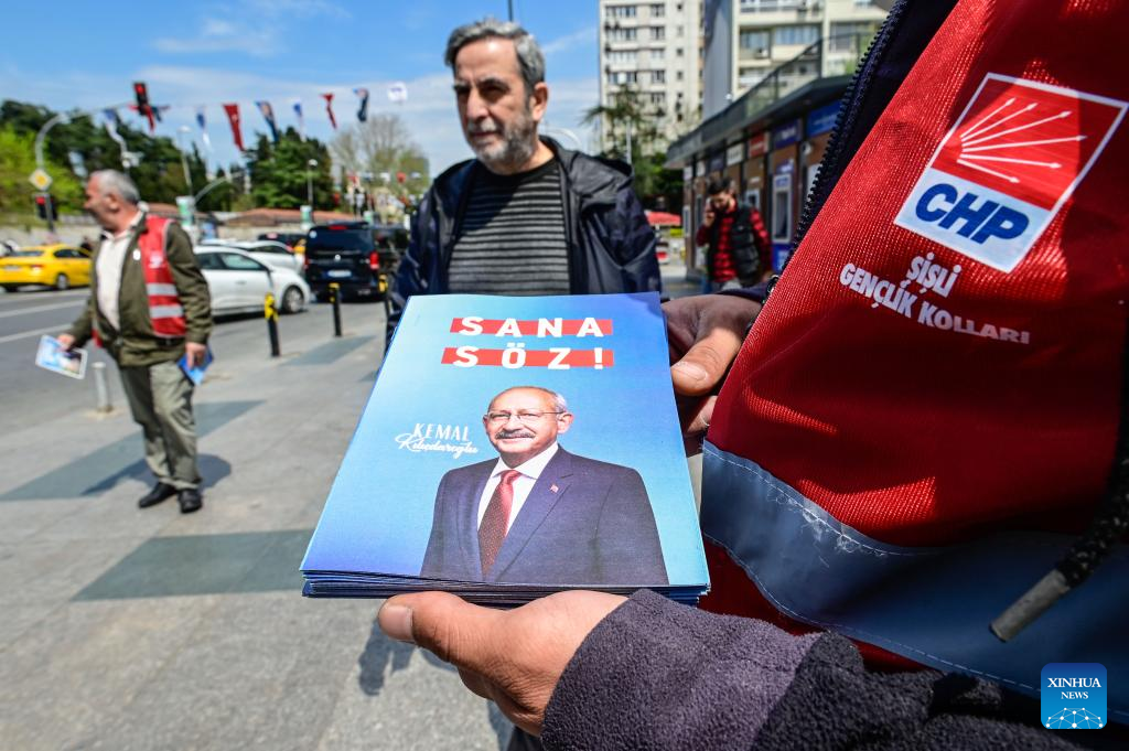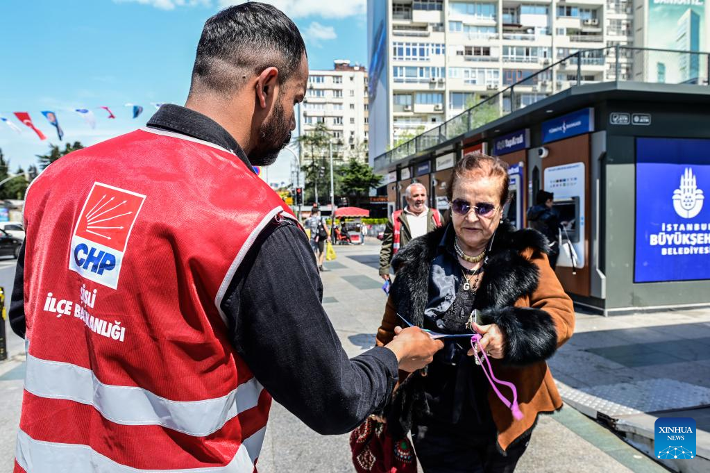 ISTANBUL, May 5 (Xinhua) --- As the upcoming Turkish presidential and parliamentary elections on May 14th are less than two weeks away, an army of canvassing volunteers is out in Istanbul's streets, trying their best to woo a vote from 11.3 million eligible voters living in Türkiye's largest city.