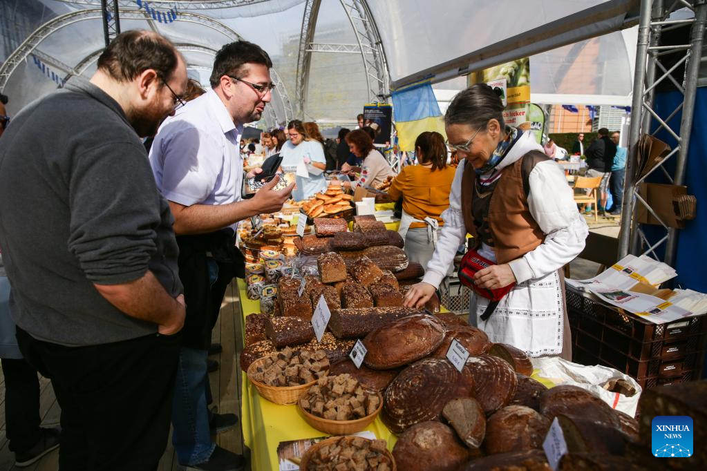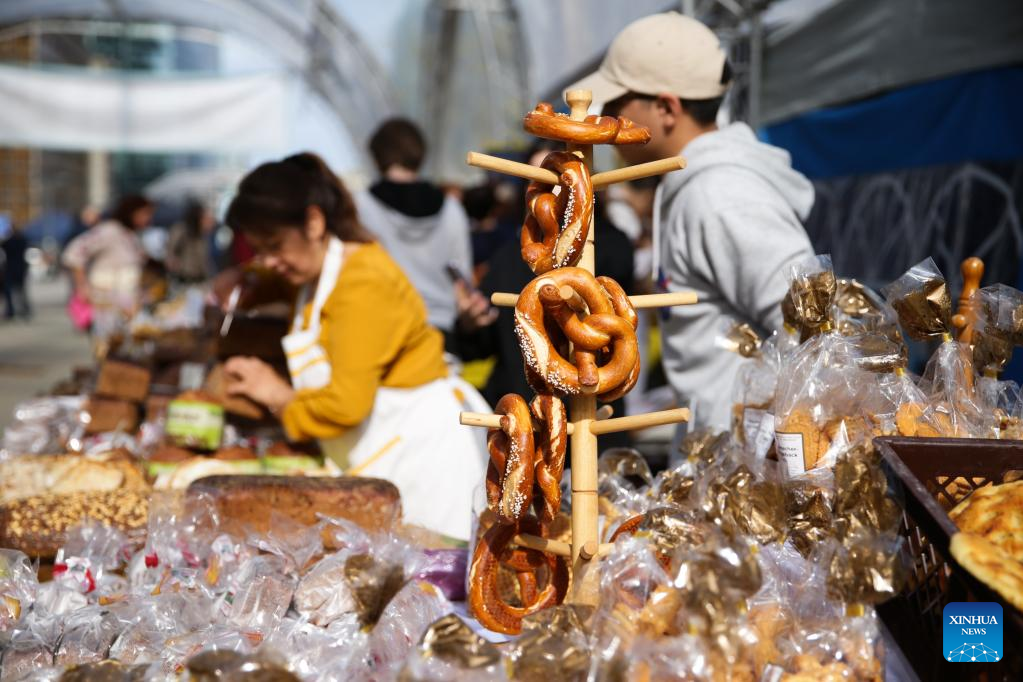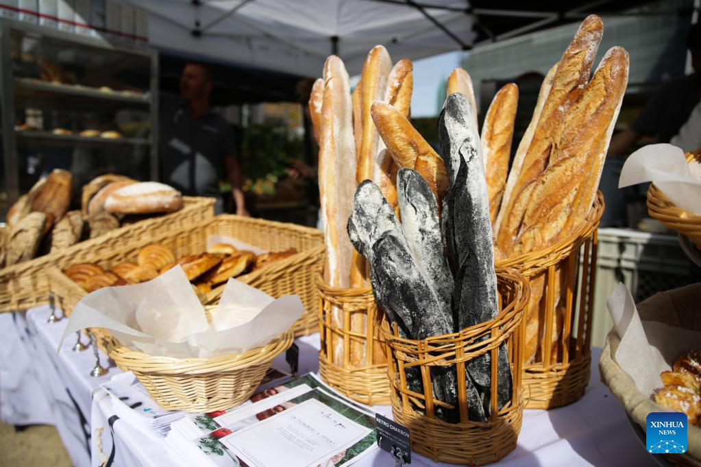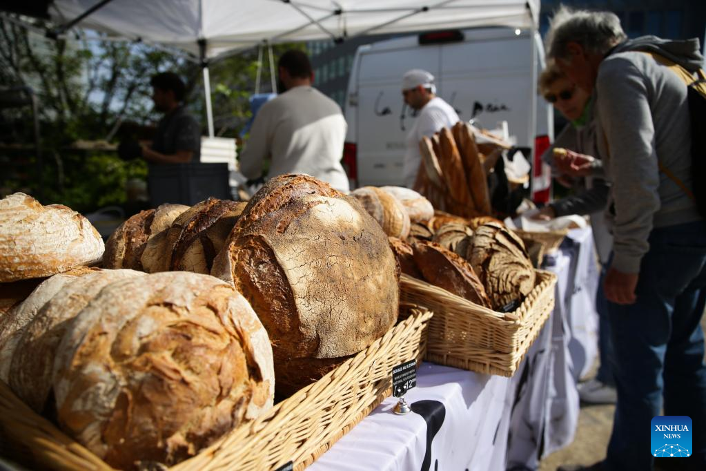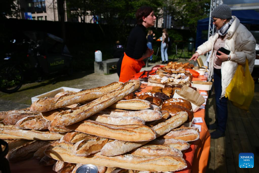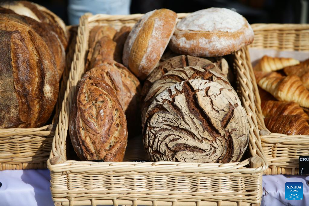 A bread festival was held in Brussels on Saturday to let people taste and buy various kinds of bread product from European countries. (Xinhua/Zheng Huansong)