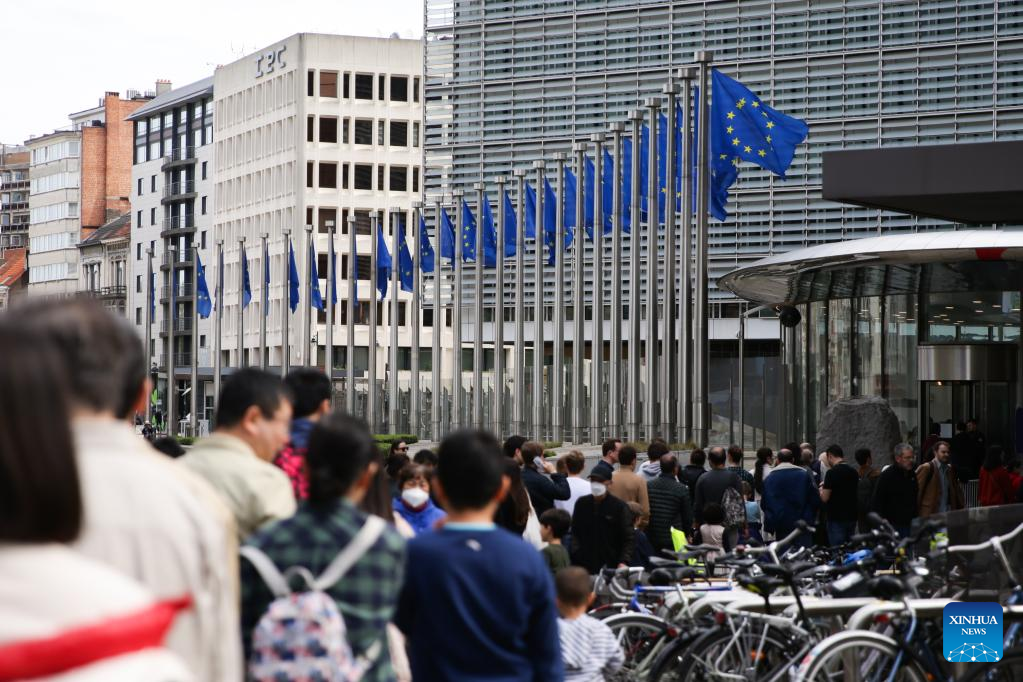 People visit the European Commission building during the Open Day of the European institutions in Brussels, Belgium, May 6, 2023. The open day is an opportunity for the public to discover how the European institutions operate. Visitors have free access to the institutions' buildings and some special introductory activities. (Xinhua/Zheng Huansong)