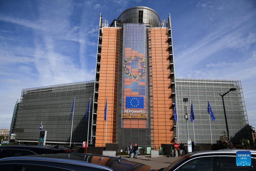 People enter the European Commission building during the Open Day of the European institutions in Brussels, Belgium, May 6, 2023. The open day is an opportunity for the public to discover how the European institutions operate. Visitors have free access to the institutions' buildings and some special introductory activities. (Xinhua/Zheng Huansong)