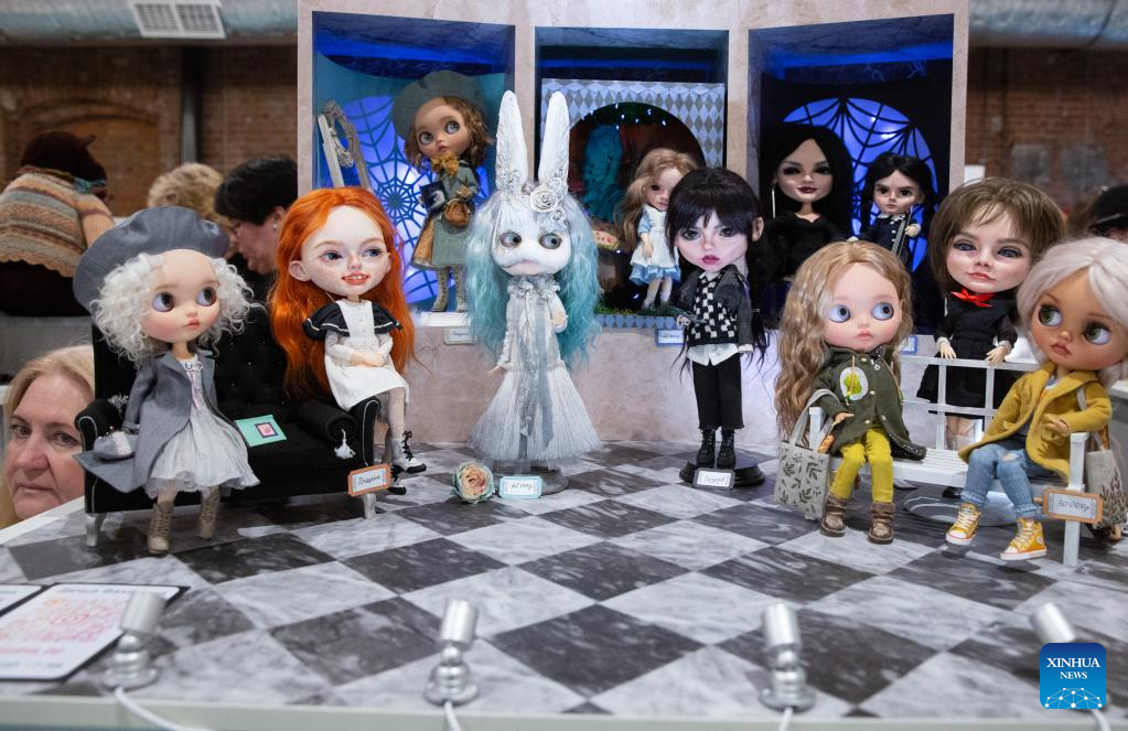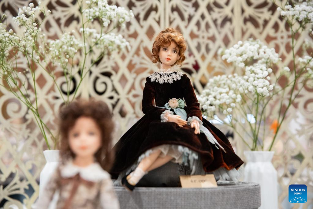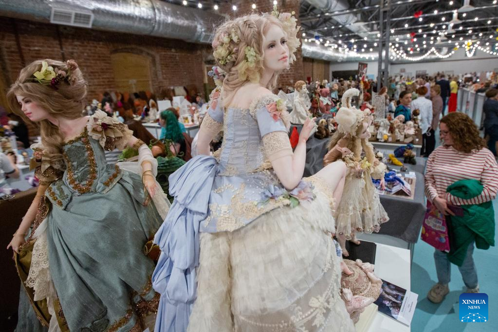 Photo taken on May 12, 2023 shows a doll exhibited at an international dolls exhibition in St. Petersburg, Russia. A variety of handmade human and animal shaped dolls are exhibited at the international dolls exhibition here for four days starting from May 11, attracting more than 400 craftsmen from Russia and abroad. (Photo by Irina Motina/Xinhua)