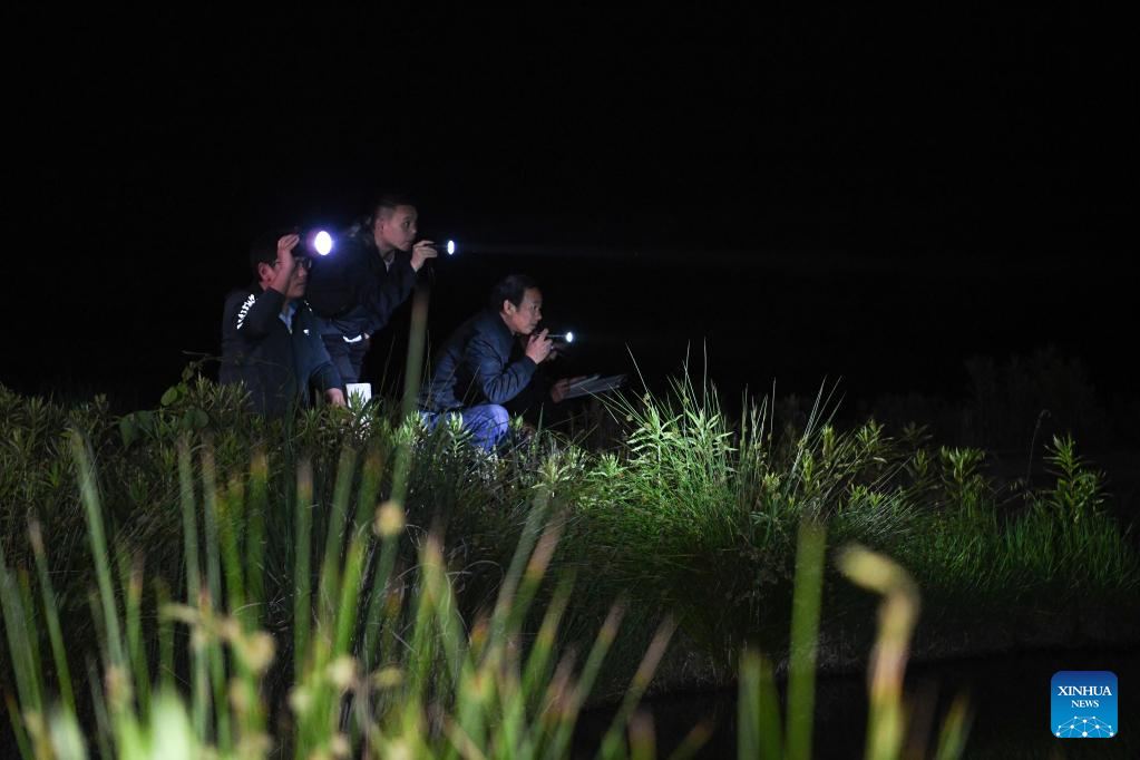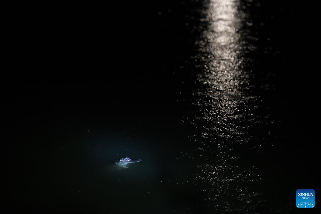 Investigators conduct a survey at a Chinese alligator national nature reserve in east China's Anhui Province, May 9, 2023. The Yangtze alligator, which has lived on Earth for over 200 million years, is a first-class protected animal endemic to China.