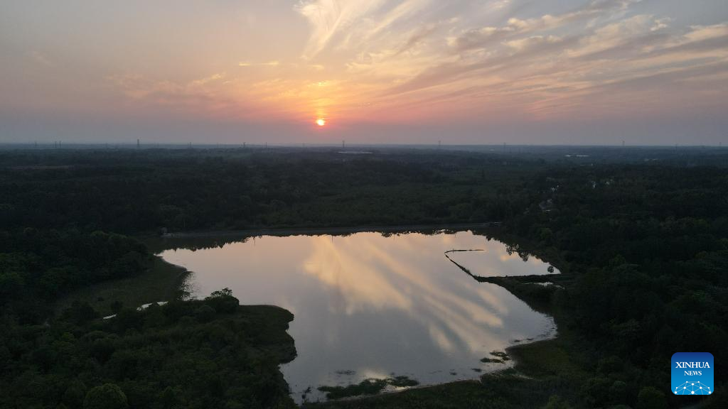 This aerial photo taken on May 9, 2023 shows a view of a Chinese alligator national nature reserve in east China's Anhui Province. The Yangtze alligator, which has lived on Earth for over 200 million years, is a first-class protected animal endemic to China.