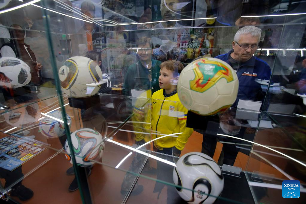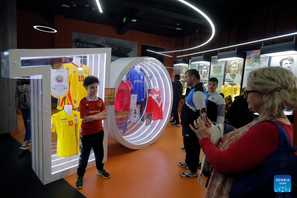People visit the Football Museum which opens till late night as part of the European Night of Museums cultural initiative in downtown Bucharest, capital of Romania, May 13, 2023. (Photo by Cristian Cristel/Xinhua)