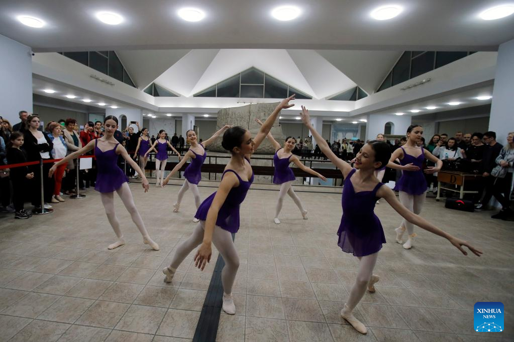 Students from a choreography lyceum perform inside Romania's National History Museum which opens till late night as part of the European Night of Museums cultural initiative in downtown Bucharest, capital of Romania, May 13, 2023. (Photo by Cristian Cristel/Xinhua)