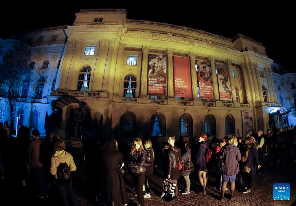 People wait in line to visit Romania's National Museum of Art which opens till late night as part of the European Night of Museums cultural initiative in downtown Bucharest, capital of Romania, May 13, 2023. (Photo by Cristian Cristel/Xinhua)