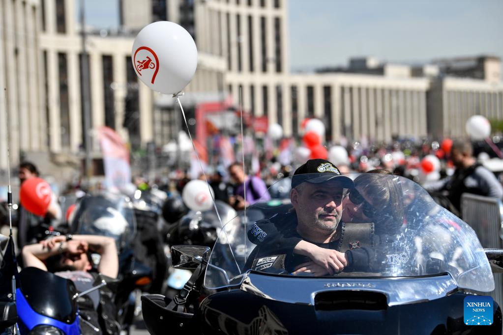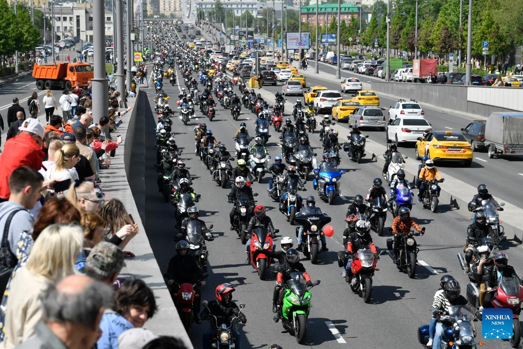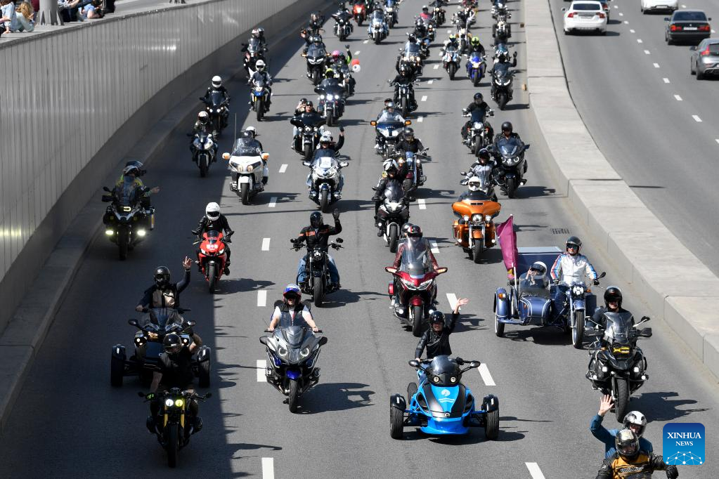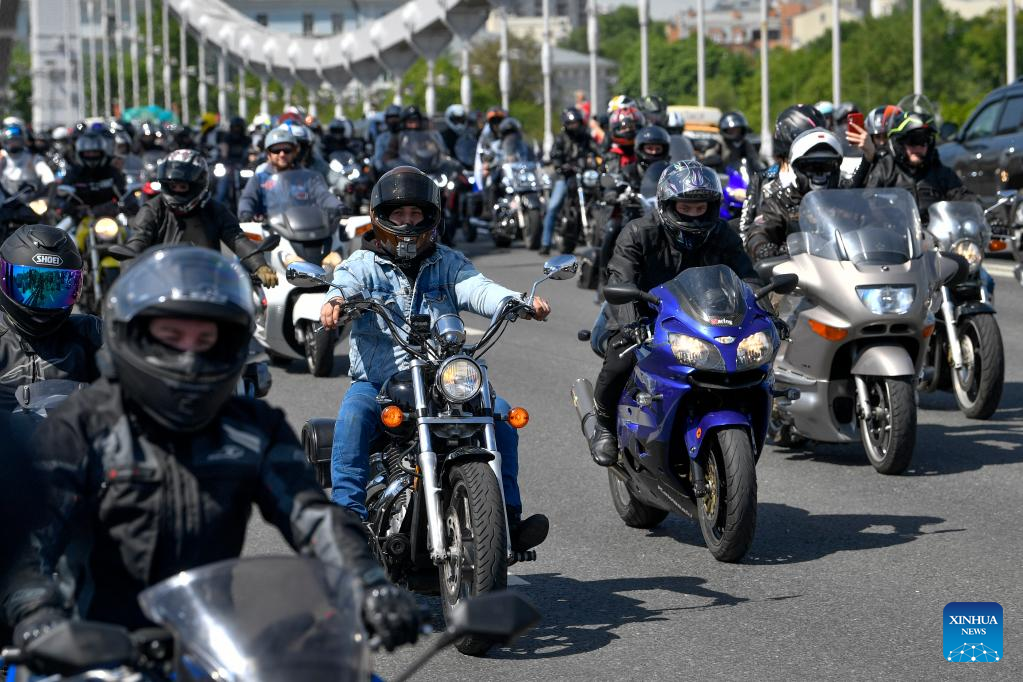 Motorcyclists participate in a motorcycle parade in Moscow, Russia, May 13, 2023. The parade marked the official opening of the motorcycle season in Moscow. (Photo by Alexander Zemlianichenko Jr/Xinhua)