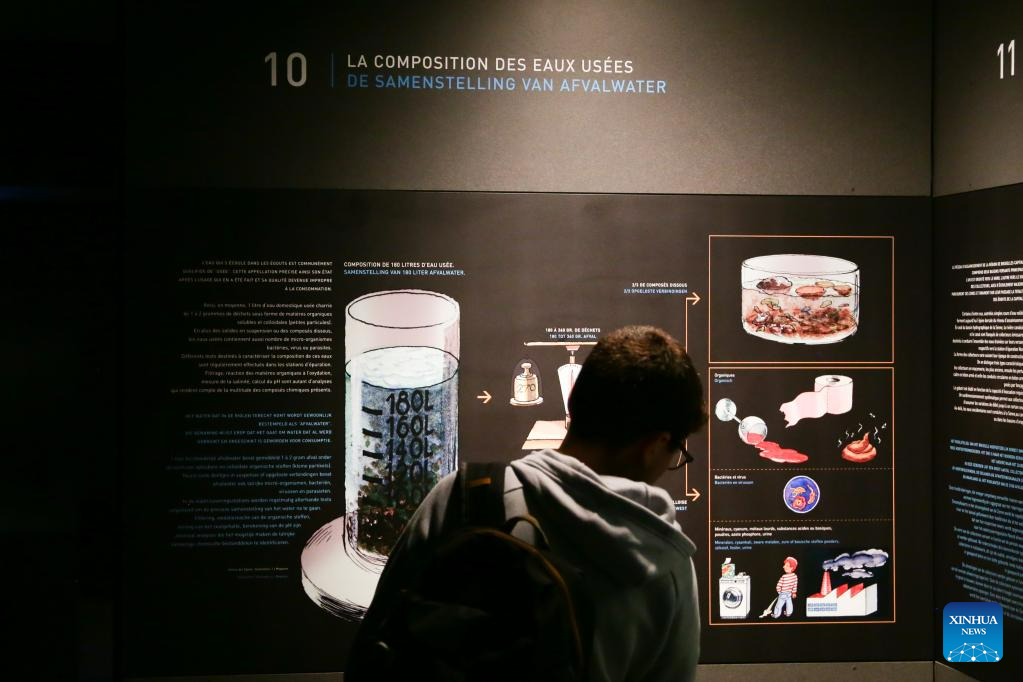 A man visits Sewer Museum in Brussels, Belgium, on May 16, 2023. Sewer Museum in Brussels shows history of the city's sewer system and water management. Visitors may get to experience the essential work of a sewage worker and the means used to combat flooding in the city through a real sewer in the museum. (Xinhua/Zheng Huansong)