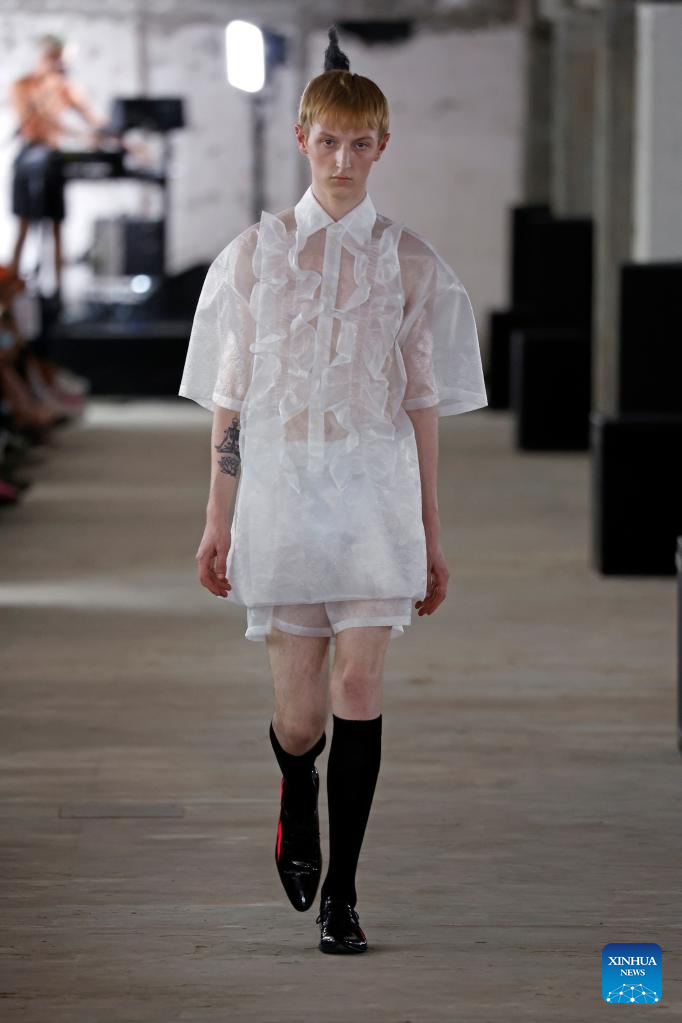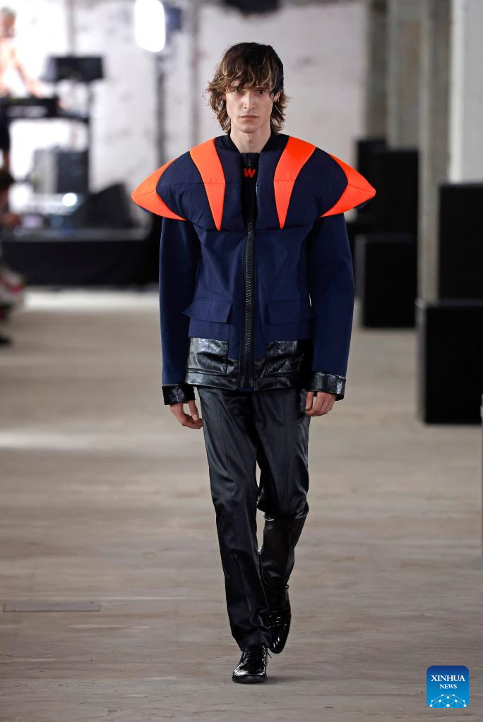 A model presents a creation from the Spring/Summer 2024 Men's collection of Walter Van Beirendonck during the Paris Fashion Week in Paris, France, on June 21, 2023. (MeetEurope/Handout via Xinhua)