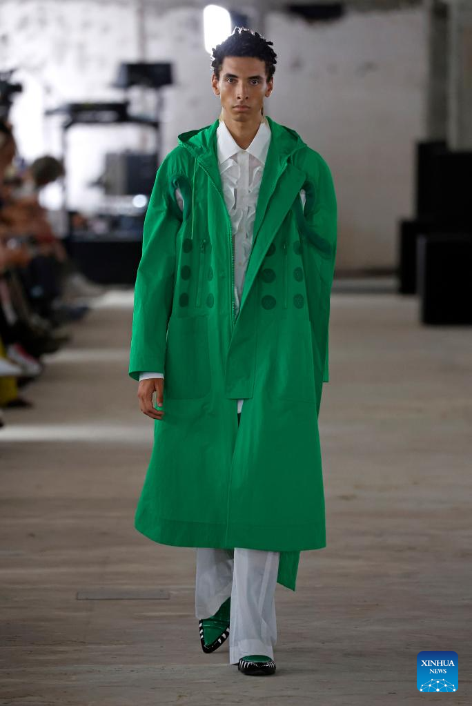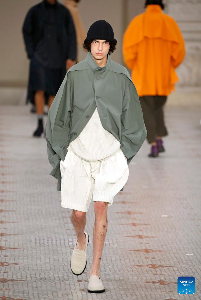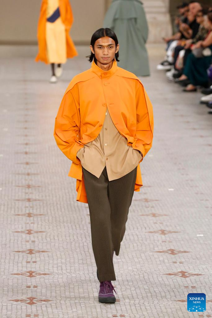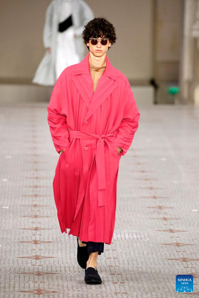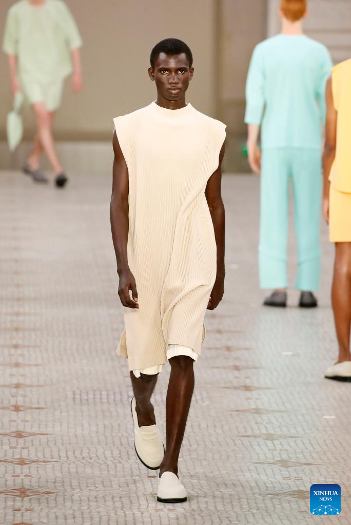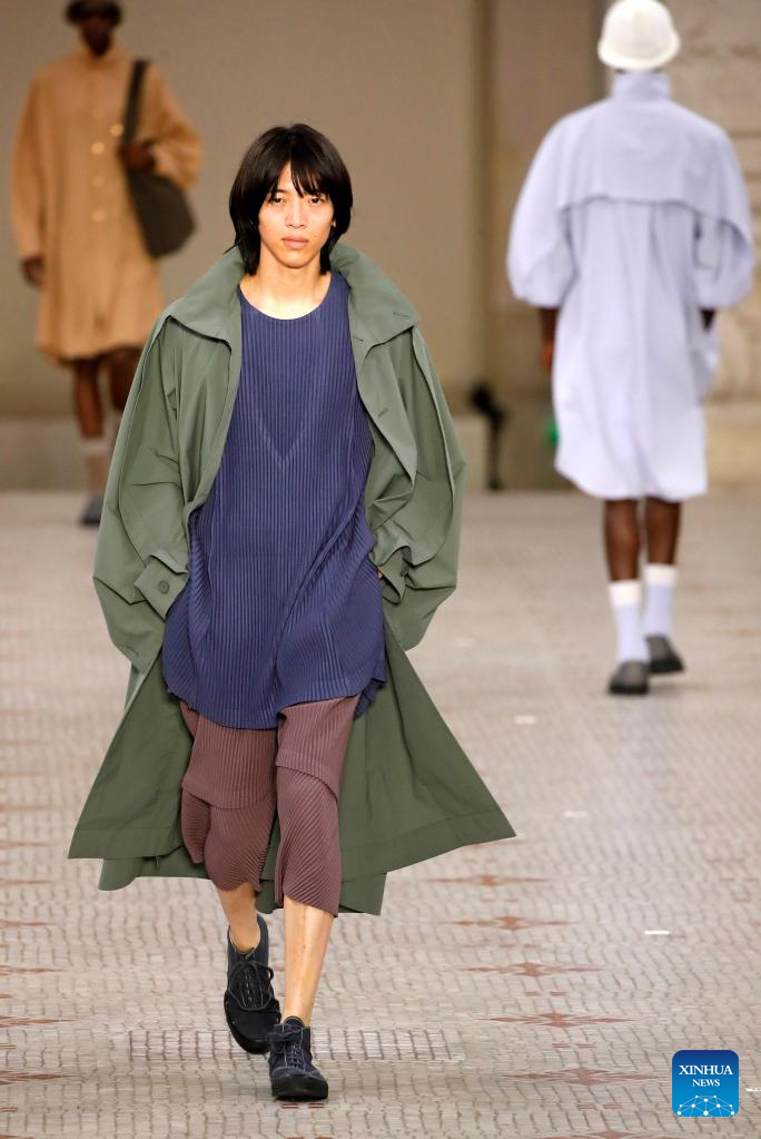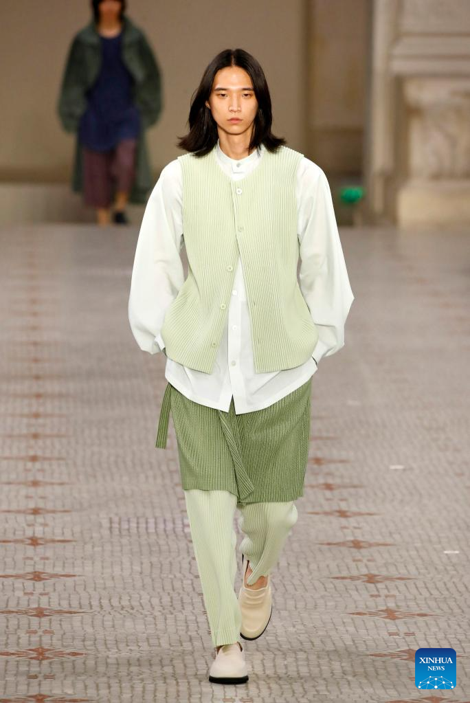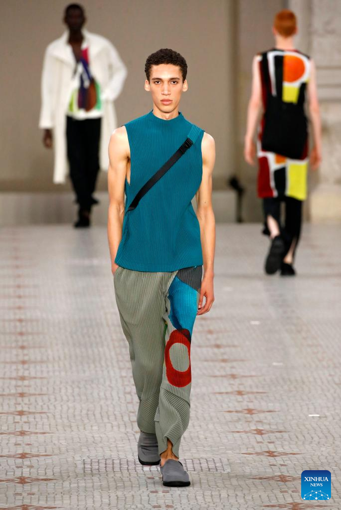 A model presents a creation from Issey Miyake as part of its Spring/Summer 2024 Men's collection during the Paris Fashion Week in Paris, France, on June 22, 2023. (MeetEurope/Handout via Xinhua)