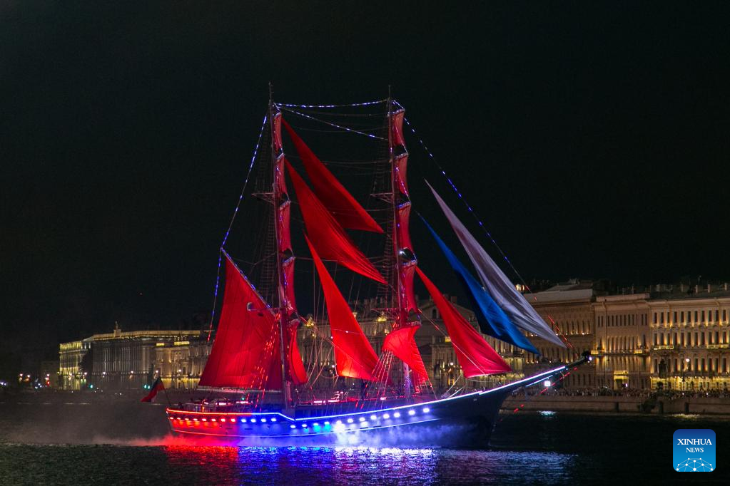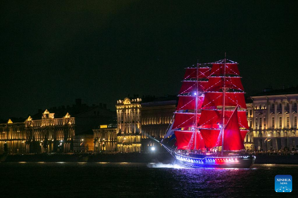 ST. PETERSBURG, June 25 (Xinhua) -- Russia's second-largest city of St. Petersburg celebrated the Scarlet Sails festival over the weekend while commemorating school graduation for students.