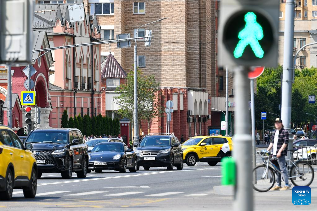Vehicles are seen on a road in Moscow, Russia, June 26, 2023. The legal regime of the counter-terrorist operation against the Wagner private military group has been canceled in Moscow and the Moscow region due to the normalization of the current situation, said the Russian government. (Xinhua/Bai Xueqi)