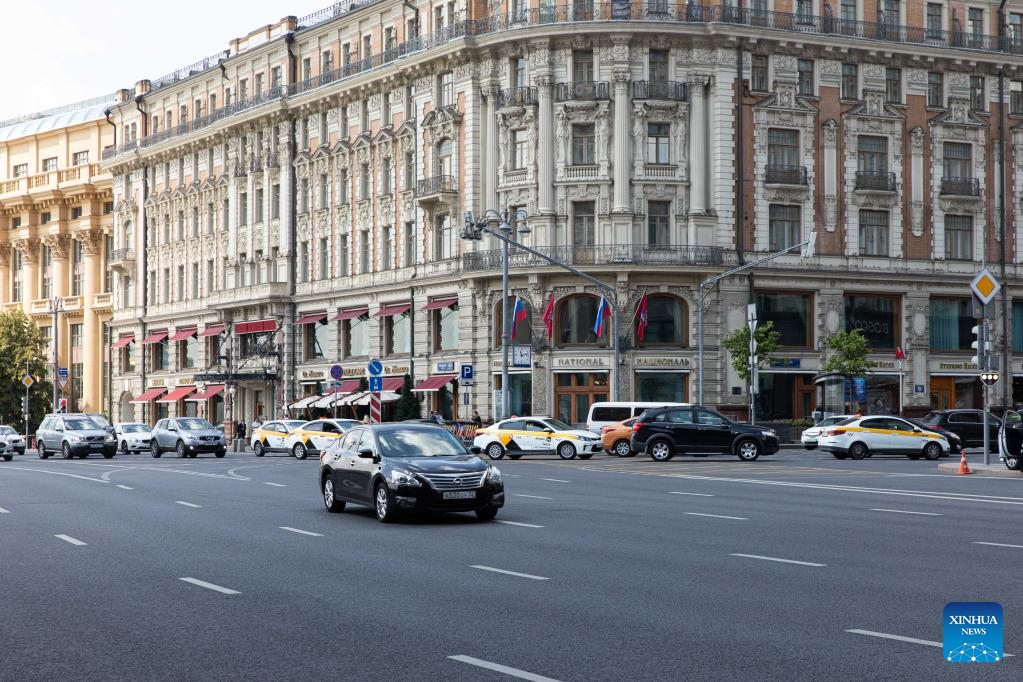 Vehicles are seen on a road in Moscow, Russia, June 26, 2023. The legal regime of the counter-terrorist operation against the Wagner private military group has been canceled in Moscow and the Moscow region due to the normalization of the current situation, said the Russian government. (Xinhua/Cao Yang)