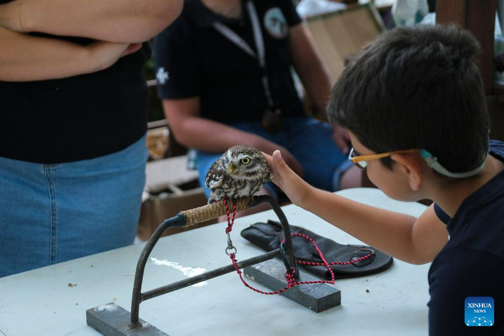 A boy touches an owl during the traditional festival of Mnarja in Buskett Gardens of Siggiewi, Malta, on June 29, 2023. A five-day traditional festival celebrating harvest was concluded on Thursday in Buskett Gardens of Malta. The event showcased agricultural products, livestock competitions and traditional folk music. The festival, named Mnarja in the Maltese language, is the principal folk festival of Malta. (Photo by Jonathan Borg/Xinhua)