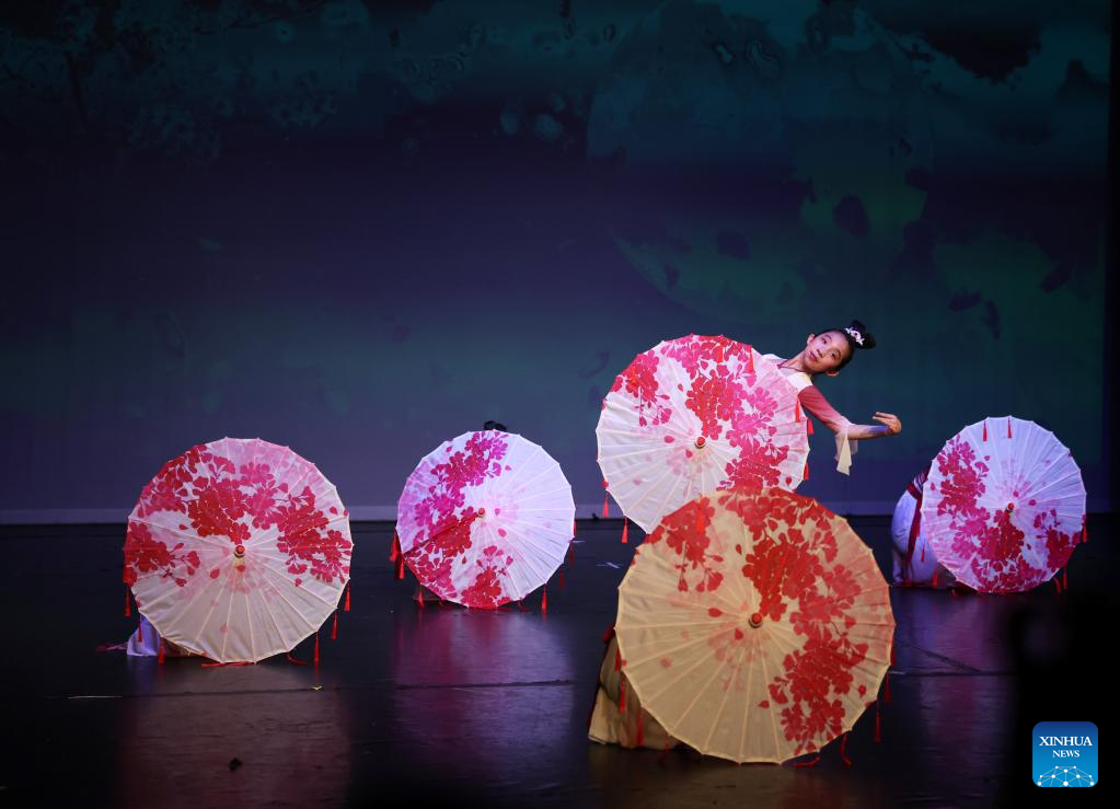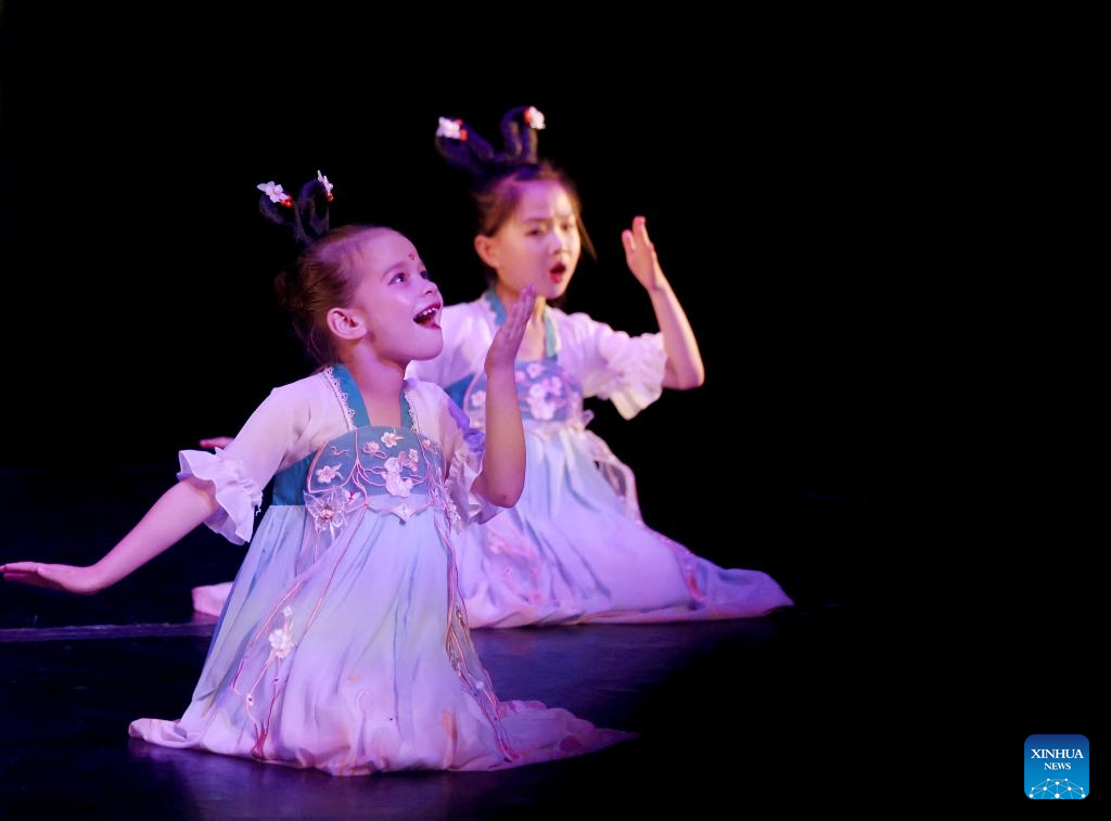 Children perform during the Silk Road Dance Festival in London, Britain, July 1, 2023. A Chinese dance show was held in east London on Saturday evening, offering the local audience a sensory cultural feast.