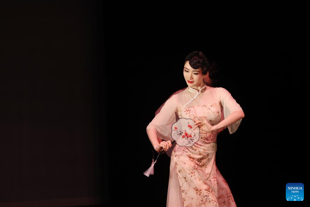 Artists perform during the Silk Road Dance Festival in London, Britain, July 1, 2023. A Chinese dance show was held in east London on Saturday evening, offering the local audience a sensory cultural feast.