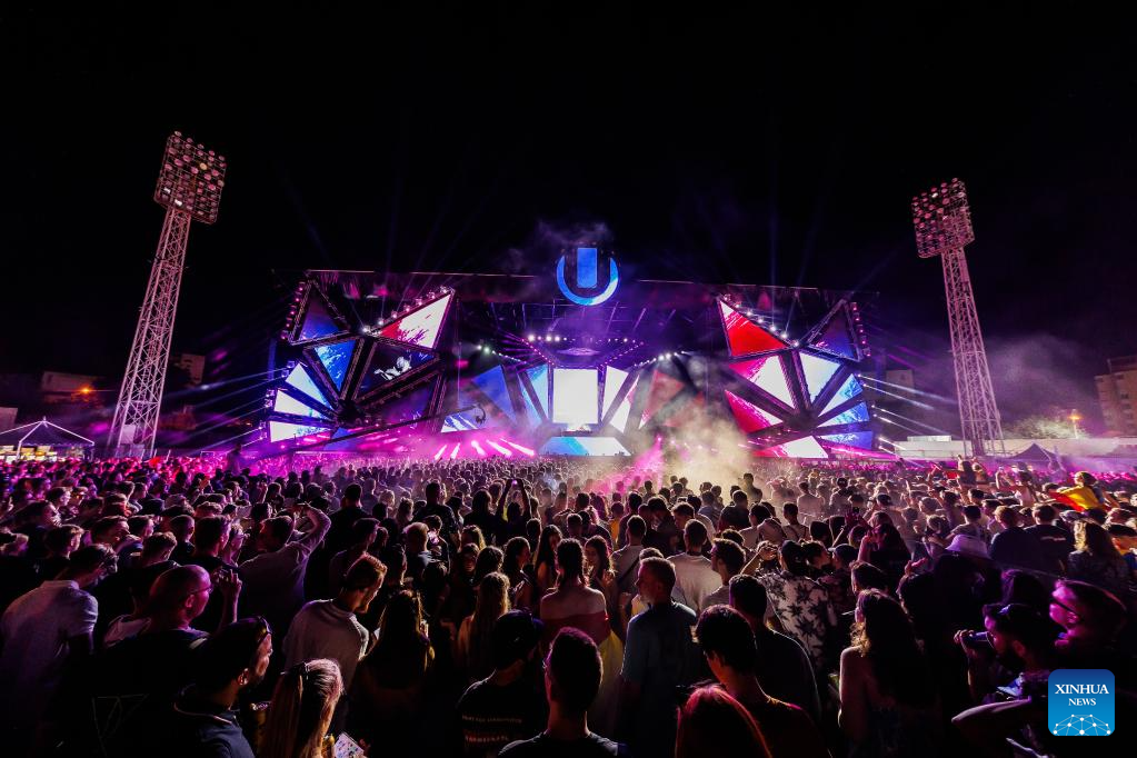 This photo taken on July 7, 2023 shows spectators on the first day of the Ultra Europe Music Festival in Split, Croatia. (Zvonimir Barisin/PIXSEL via Xinhua)