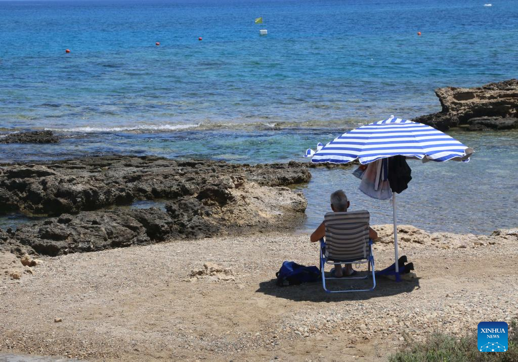 It expects temperatures to climb to 43 degrees Celsius on Friday and stay over 25 degrees Celsius during the night, thus it has issued an amber alert for high temperatures which will be in force from 9 pm on Thursday to 6 pm on Friday. (Photo by George Christophorou/Xinhua)