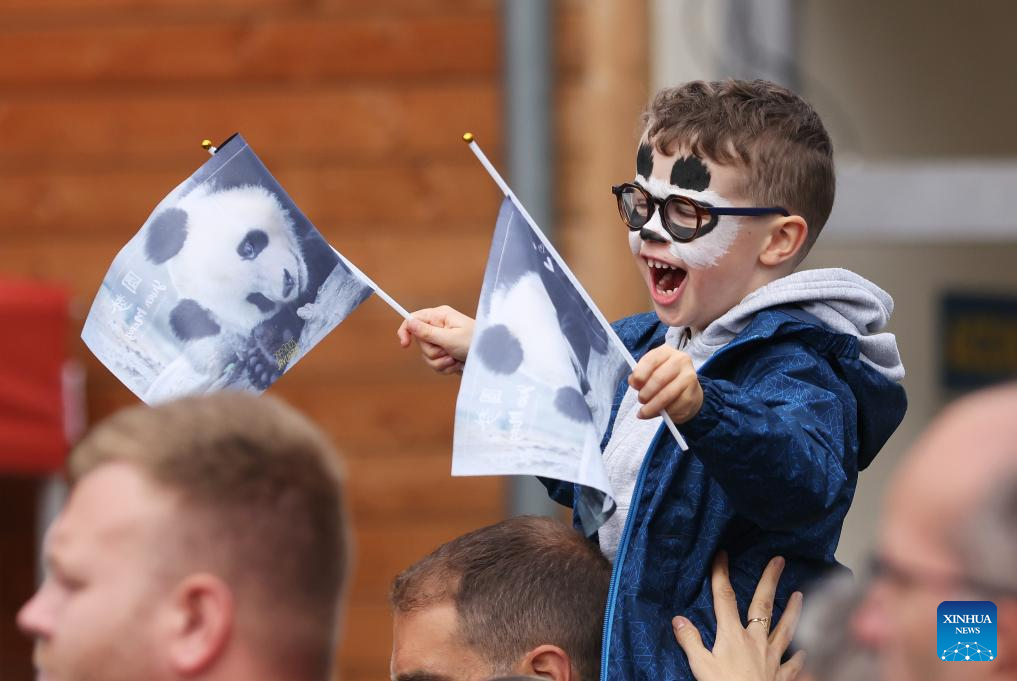 A boy waits to bid farewell to giant panda Yuan Meng in front of the Beauval Zoo in Saint-Aignan, France, July 25, 2023. First giant panda born in France Yuan Meng settled into a customized cage filled with bamboo, starting his journey to China's Chengdu Research Base of Giant Panda Breeding Tuesday after a long-haul departure from Paris. (Xinhua/Gao Jing)