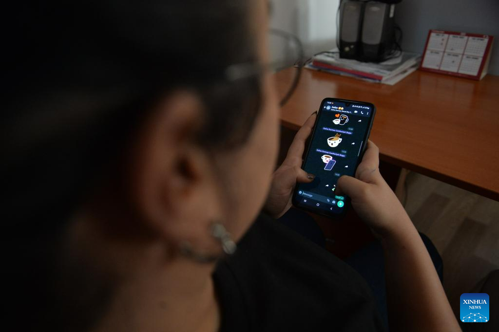A local resident sends texts with emojis in Ankara, Türkiye, on July 28, 2023. (Photo by Mustafa Kaya/Xinhua)