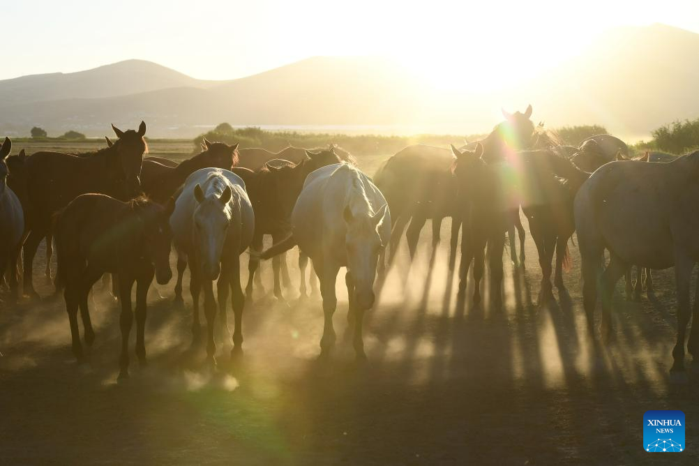 A herd of wild horses are seen at Sultan Reedy National Park in Kayseri, Türkiye, on Aug. 5, 2023. The park is located around Lake Yay in Kayseri Province, central Türkiye. (Mustafa Kaya/Handout via Xinhua)