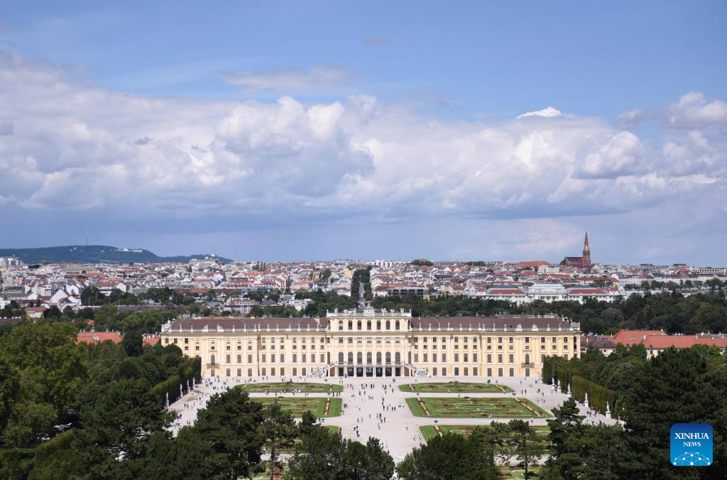 This photo taken on Aug. 8, 2023 shows a view of Schonbrunn and its garden in Vienna, Austria. (Xinhua/He Canling)