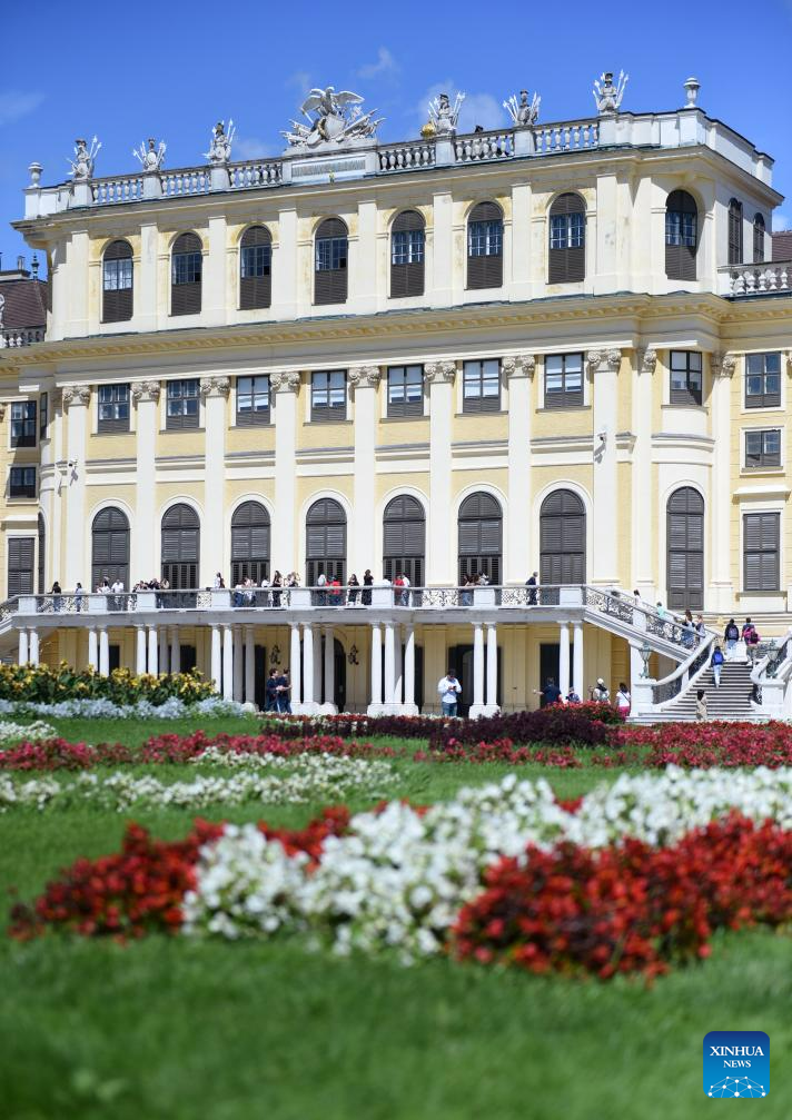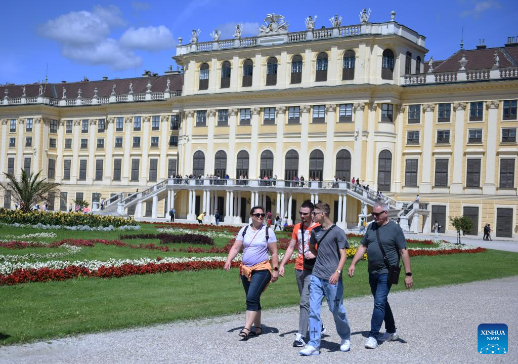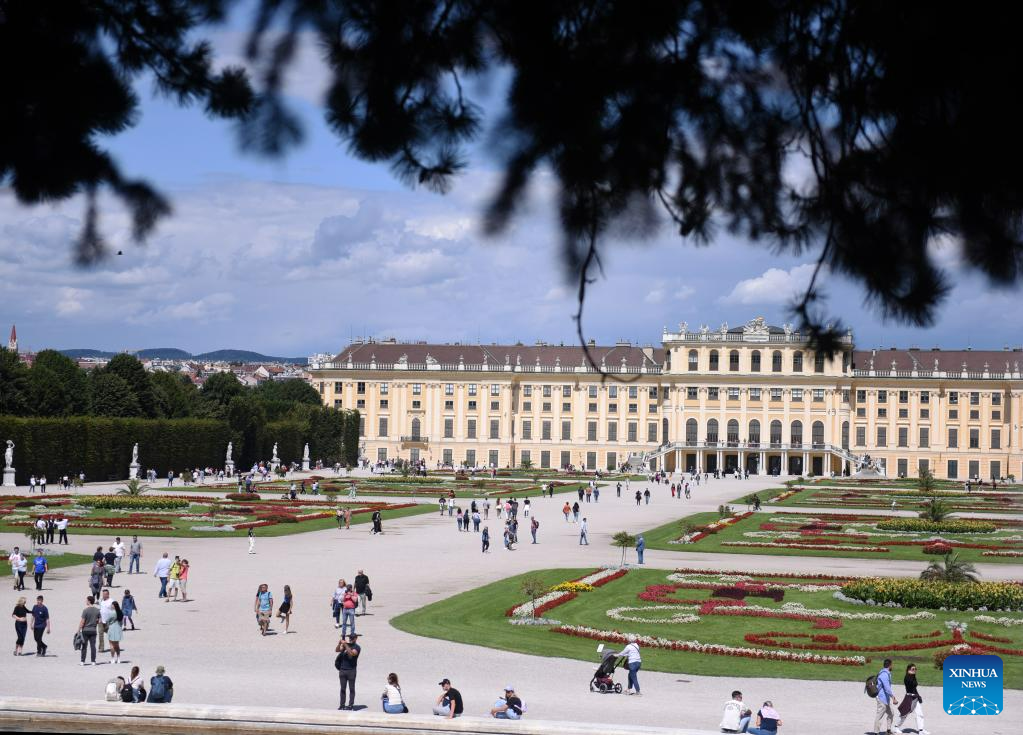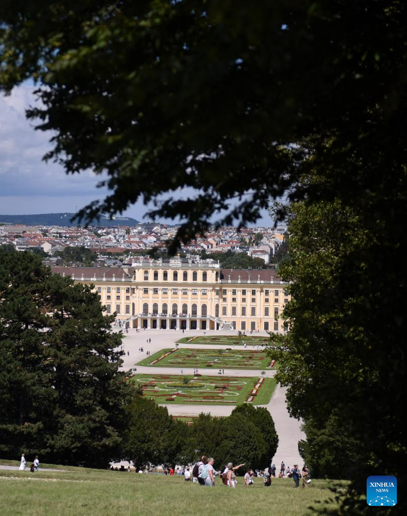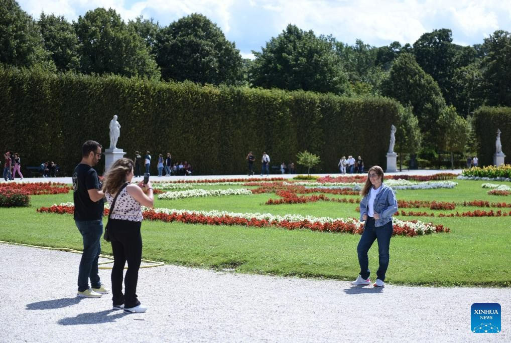 Tourists visit the Schonbrunn Garden in Vienna, Austria, on Aug. 8, 2023. (Xinhua/He Canling)