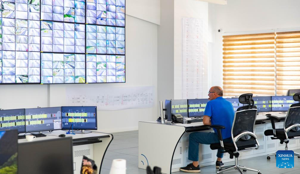 A staff member works in a control room of a priority section of the Bar-Boljare highway in Montenegro, July 24, 2023. (Photo by Wang Wei/Xinhua)