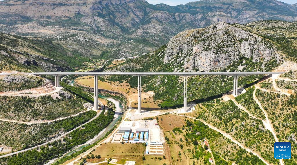 This aerial photo taken on July 24, 2023 shows a bridge on the Bar-Boljare highway in Montenegro. (Photo by Wang Wei/Xinhua)