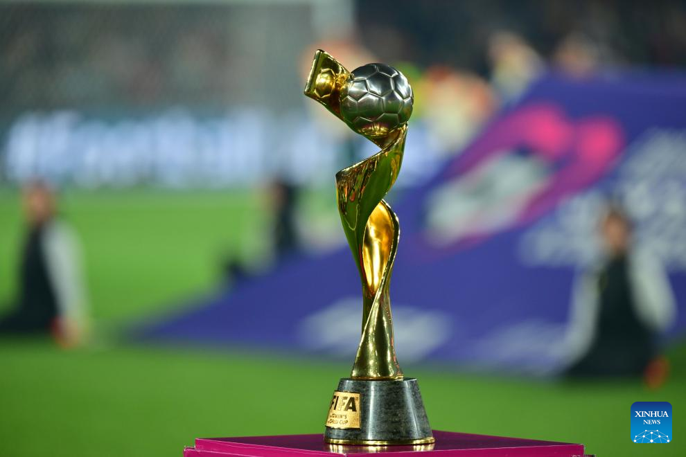 Photo taken on Aug. 20, 2023 shows the FIFA Women's World Cup trophy prior to the Final between Spain and England at the 2023 FIFA Women's World Cup in Sydney, Australia. (Xinhua/Zhu Wei)